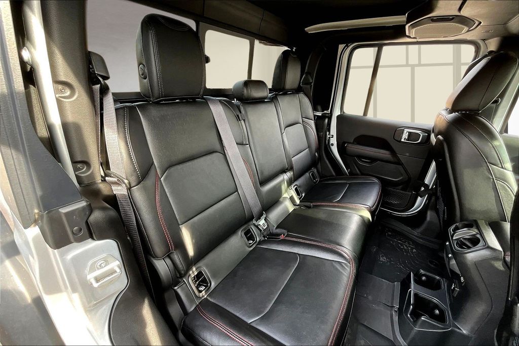 Gladiator Rubicon, 4D Crew Cab, 3.6L V6 24V VVT, 8-Speed Automatic, 4WD, Silver Zynith Clearcoat, Black Leather, 240 Amp Alternator, AM/FM radio: SiriusXM, Apple CarPlay/Android Auto, Auto-dimming Rear-View mirror, Automatic temperature control, Auxiliary Switch Group, Auxiliary Switches, Black 3-Piece Hard Top, Brake assist, Class IV Receiver Hitch, Cold Weather Group, Daytime Running Lamps LED Accents, Electronic Stability Control, Freedom Panel Storage Bag, Front dual zone A/C, Front fog lights, Front LED Fog Lamps, Full Length Floor Console Premium Armrest, Fully automatic headlights, Garage door transmitter, Heated door mirrors, Heated Front Seats, Heated Steering Wheel, Heavy-Duty Engine Cooling, Leather Trimmed Bucket Seats, Leather Wrapped Park Brake Handle, Leather Wrapped Shift Knob, LED Lighting Group, LED Park Turn Lamps, LED Premium Reflector Headlamps, LED Taillamps, Navigation System, Outside temperature display, ParkView Rear Back-Up Camera, Performance Suspension, Power door mirrors, Premium Door Trim Panel, Quick Order Package 24R Rubicon, Radio: Uconnect 4C Nav w/8.4" Display, Rear Armrest w/Cupholder Seat, Rear Sliding Window, Rear Window Defroster, Remote keyless entry, Telescoping steering wheel, Tilt steering wheel, Trailer Hitch Zoom, Trailer Tow Package.