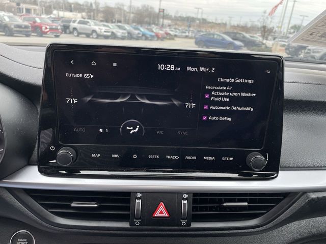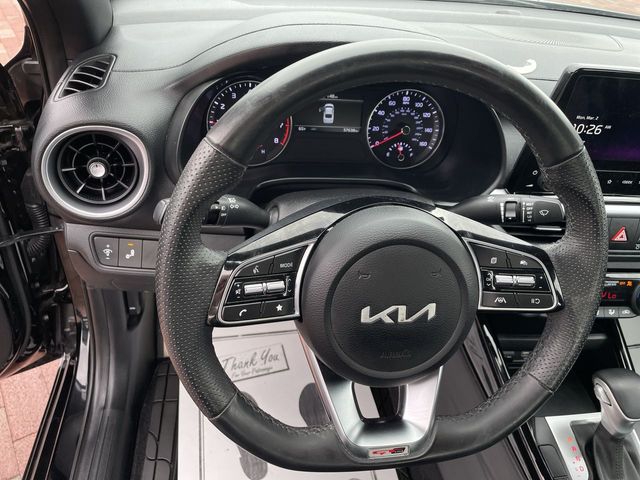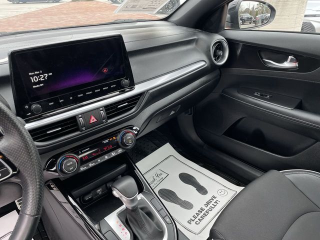 Recent Arrival! CARFAX One-Owner. 2023 Kia Forte GT-Line GT-Line Aurora Black Pearl 4D Sedan 2.0L I4 MPI CVT FWD This vehicle comes well equipped with 17" x 7.0J Alloy Wheels, 4-Wheel Disc Brakes, 6 Speakers, ABS brakes, Air Conditioning, Alloy wheels, AM/FM radio: SiriusXM, Apple CarPlay & Android Auto, Auto High-beam Headlights, Automatic temperature control, Brake assist, Bumpers: body-color, Carpet Floor Mats, Cloth & SynTex Seat Trim, Delay-off headlights, Driver door bin, Driver vanity mirror, Dual front impact airbags, Dual front side impact airbags, Electronic Stability Control, Emergency communication system, Exterior Parking Camera Rear, Front anti-roll bar, Front Bucket Seats, Front Center Armrest, Front dual zone A/C, Front fog lights, Front reading lights, Front wheel independent suspension, Fully automatic headlights, Heated door mirrors, Illuminated entry, Leather Shift Knob, Leather steering wheel, Low tire pressure warning, Navigation System, Occupant sensing airbag, Outside temperature display, Overhead airbag, Overhead console, Panic alarm, Passenger door bin, Passenger vanity mirror, Power door mirrors, Power steering, Power windows, Radio data system, Radio: 10.25" Display Audio, Rear seat center armrest, Rear window defroster, Remote keyless entry, Security system, Speed control, Split folding rear seat, Spoiler, Sport steering wheel, Steering wheel mounted audio controls, Tachometer, Telescoping steering wheel, Tilt steering wheel, Traction control, Trip computer, Turn signal indicator mirrors, and Variably intermittent wipers.
