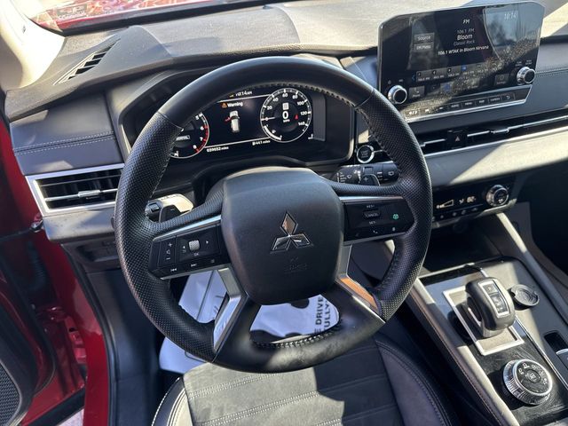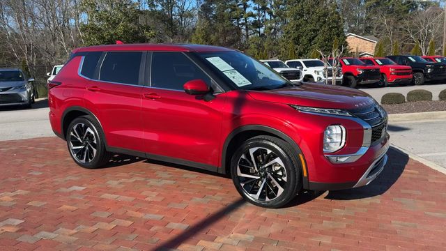 CARFAX One-Owner. 2023 Mitsubishi Outlander SE SE Red Diamond 4D Sport Utility 2.5L 4-Cylinder DOHC CVT FWD This vehicle comes well equipped with ABS brakes, Active Cruise Control, Alloy wheels, Electronic Stability Control, Front dual zone A/C, Heated door mirrors, Heated Front Bucket Seats, Heated front seats, Illuminated entry, Low tire pressure warning, Navigation System, Power Liftgate, Remote keyless entry, and Traction control ABS brakes, Active Cruise Control, Alloy wheels, Electronic Stability Control, Front dual zone A/C, Heated door mirrors, Heated Front Bucket Seats, Heated front seats, Illuminated entry, Low tire pressure warning, Navigation System, Power Liftgate, Remote keyless entry, Traction control, 3rd row seats: split-bench, 4-Wheel Disc Brakes, 5.694 Axle Ratio, 6 Speakers, Air Conditioning, AM/FM radio: SiriusXM, Android Auto & Apple CarPlay, Auto High-beam Headlights, Automatic temperature control, Brake assist, Bumpers: body-color, Driver door bin, Driver vanity mirror, Dual front impact airbags, Dual front side impact airbags, Emergency communication system: Mitsubishi Connect w/ 24-month trial, Exterior Parking Camera Rear, Four wheel independent suspension, Front anti-roll bar, Front Bucket Seats, Front Center Armrest w/Storage, Front fog lights, Front reading lights, Fully automatic headlights, Knee airbag, Leather Shift Knob, Leather steering wheel, Occupant sensing airbag, Outside temperature display, Overhead airbag, Overhead console, Panic alarm, Passenger door bin, Passenger vanity mirror, Power door mirrors, Power driver seat, Power steering, Power windows, Radio data system, Radio: AM/FM 9.0" Navigation w/Smartphone Link, Rain sensing wipers, Rear anti-roll bar, Rear seat center armrest, Rear side impact airbag, Rear window defroster, Rear window wiper, Reclining 3rd row seat, Security system, Speed control, Speed-Sensitive Wipers, Split folding rear seat, Spoiler, Steering wheel mounted audio controls, Synthetic Leather Seat Trim, Tachometer, Telescoping steering wheel, Tilt steering wheel, Trip computer, Turn signal indicator mirrors, Variably intermittent wipers, and Wheels: 20" Two-Tone Alloy.