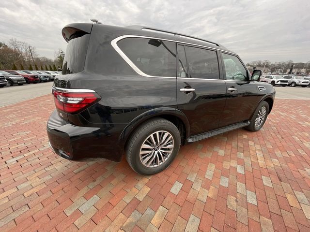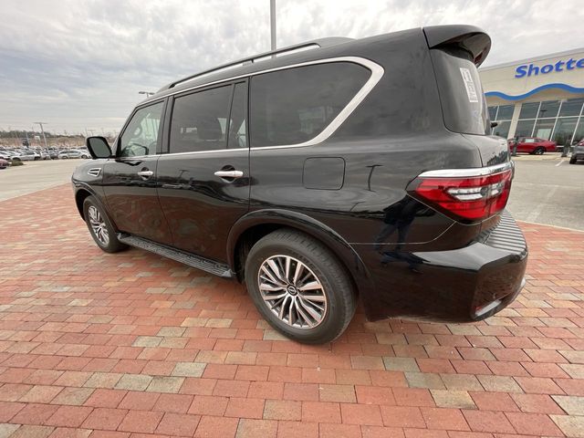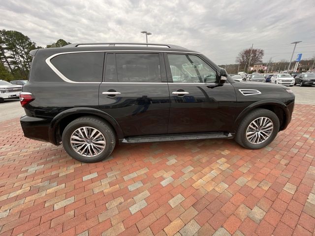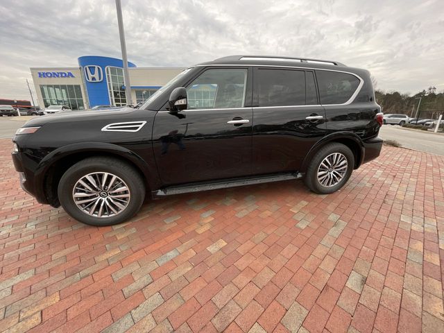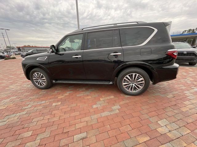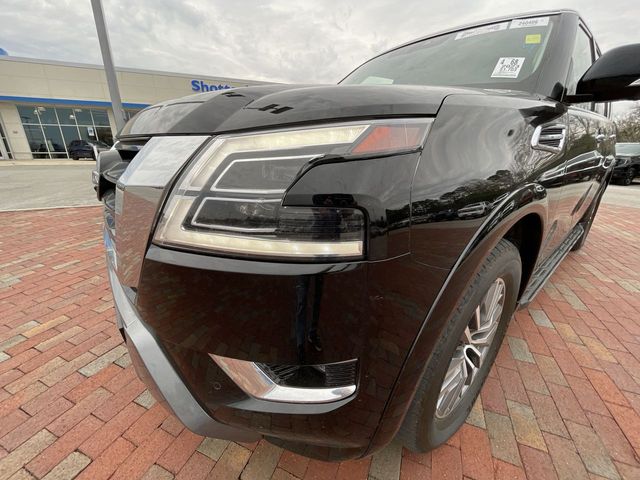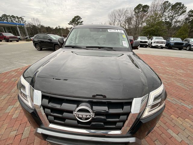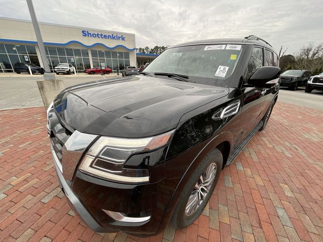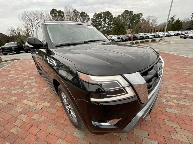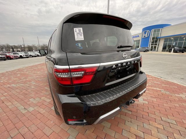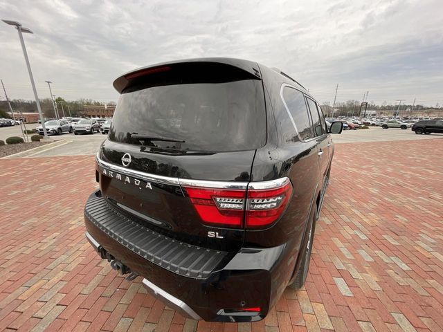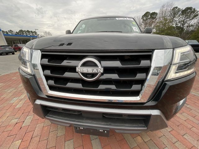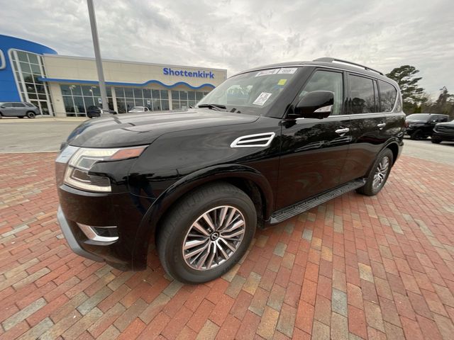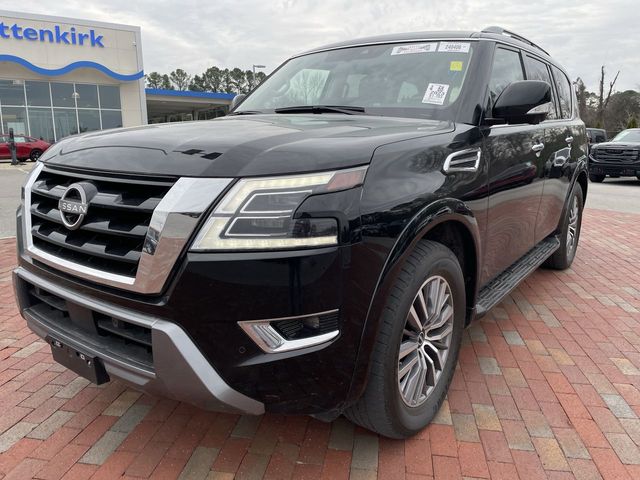 Recent Arrival! CARFAX One-Owner. 2023 Nissan Armada SL SL Super Black 4D Sport Utility 5.6L V8 DOHC 32V LEV3-ULEV125 400hp 7-Speed Automatic 4WD This vehicle comes well equipped with Captain's Chairs Package (2nd Row Captain's Chairs and 2nd Row Center Console w/Padded Armrest), 13 Speakers, 2.94 Axle Ratio, 3rd Row Carpeted Floor Mats - Captain Seat, 3rd row seats: split-bench, 4-Wheel Disc Brakes, ABS brakes, Air Conditioning, Alloy wheels, AM/FM radio: SiriusXM, Anti-whiplash front head restraints, Auto High-beam Headlights, Auto tilt-away steering wheel, Auto-dimming door mirrors, Auto-dimming Rear-View mirror, Auto-leveling suspension, Automatic temperature control, Bose 13-Speaker Premium Audio System, Brake assist, Bumpers: body-color, Delay-off headlights, Driver door bin, Driver vanity mirror, Dual front impact airbags, Dual front side impact airbags, Electronic Stability Control, Emergency communication system: NissanConnect Services, Exterior Parking Camera Rear, Four wheel independent suspension, Front anti-roll bar, Front Bucket Seats, Front Center Armrest, Front dual zone A/C, Front fog lights, Front reading lights, Fully automatic headlights, Garage door transmitter: HomeLink, Heated door mirrors, Heated Front Bucket Seats, Heated front seats, Heated steering wheel, Illuminated entry, Knee airbag, Leather Shift Knob, Leather-Appointed Seat Trim, Low tire pressure warning, Memory seat, Navigation System, NissanConnect featuring Apple CarPlay and Android Auto, Occupant sensing airbag, Outside temperature display, Overhead airbag, Overhead console, Panic alarm, Passenger door bin, Passenger vanity mirror, Power door mirrors, Power driver seat, Power Liftgate, Power moonroof, Power passenger seat, Power steering, Power windows, Premium audio system: Bose, Radio: NissanConnect w/SiriusXM, Rear air conditioning, Rear anti-roll bar, Rear reading lights, Rear seat center armrest, Rear window defroster, Rear window wiper, Reclining 3rd row seat, Remote keyless entry, Security system, Speed control, Speed-sensing steering, Speed-Sensitive Wipers, Split folding rear seat, Spoiler, Steering wheel memory, Steering wheel mounted audio controls, Tachometer, Telescoping steering wheel, Tilt steering wheel, Traction control, Trip computer, Turn signal indicator mirrors, Variably intermittent wipers, Voltmeter, and Wheels: 20" x 8J Painted Alloy.