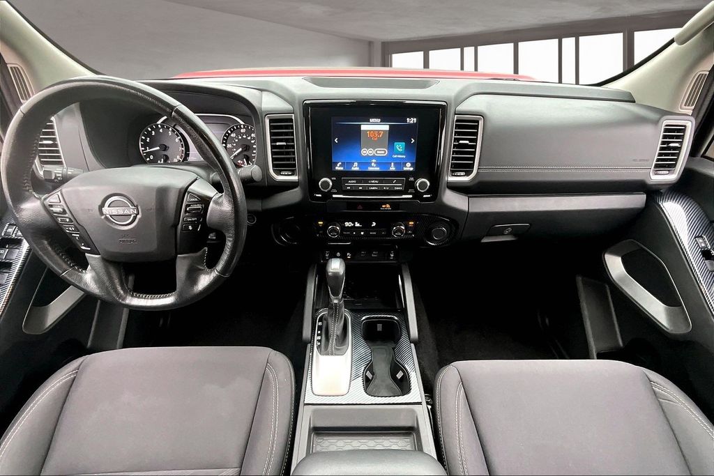 Apple CarPlay, Android Auto, Adaptive Cruise Control, Back Up Camera, Blind Spot Monitoring System, Heated Seats, Heated Steering Wheel, Lane Departure, Power Drivers Seat, Parking Sensors, Remote Start, Tow Package, Frontier SV, 4D Crew Cab, 3.8L DI DOHC 24V V6, Red Alert, Charcoal Cloth, 120V Power Outlet in Bed, 120V Power Outlet in Rear Center Console, Bed Access Package, Bed Under-Rail Lighting, Black Frontier Logo Side Graphic, Black Hood Graphic, Black Tailgate Logo Insert, Blind Spot Warning, Front Halogen Fog Lights, Graphics Package, Heated Front Seats, Heated Leather Steering Wheel, Heated Outside Mirrors, High Beam Assist (HBA), HVAC - Dual-Zone Front Auto A/C, I-Key w/Request Switches on O/S Handles, Illuminated Locking Glove Box, Intelligent Cruise Control, Lane Departure Warning System, Leather Shift Lever, Overhead Console Storage (Sunglass Holder), Power driver seat, Radio: SXM/AM/FM/AUX/USB Audio System w/6 Speakers, Rear Automatic Braking (RAB), Rear Cross Traffic Alert (RCTA), Rear Sonar System, Remote Engine Starter, Sliding Rear Window, Spray-In Bedliner, SV Convenience Package, Technology Package, Tow Package: Hitch, Tow Harness, Tow/Haul Mode Switch, Trailer Hitch w/Wiring Harness, Utili-Track System.