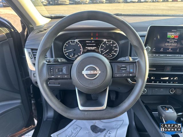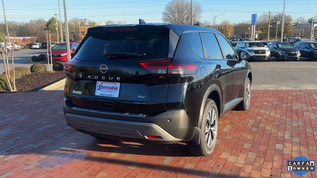 CARFAX One-Owner. 2023 Nissan Rogue SV SV Super Black 4D Sport Utility 1.5L I3 Turbocharged DOHC 12V LEV3-ULEV50 201hp CVT with Xtronic FWD This vehicle comes well equipped with 18" Aluminum Alloy Wheels, 4-Wheel Disc Brakes, 5.604 Axle Ratio, 6 Speakers, ABS brakes, Air Conditioning, Alloy wheels, AM/FM Radio, AM/FM radio: SiriusXM, Auto High-beam Headlights, Automatic temperature control, Black Splash Guards (Set of 4), Brake assist, Bumpers: body-color, Chrome Rear Bumper Protector, Cloth Seat Trim, Delay-off headlights, Driver door bin, Driver vanity mirror, Dual front impact airbags, Dual front side impact airbags, Electronic Stability Control, Emergency communication system: NissanConnect Services, Floor Mats w/1-Piece Cargo Area Protector, Four wheel independent suspension, Front anti-roll bar, Front Bucket Seats, Front Center Armrest, Front dual zone A/C, Front reading lights, Fully automatic headlights, Heated door mirrors, Illuminated entry, Knee airbag, Low tire pressure warning, NissanConnect featuring Apple CarPlay and Android Auto, Occupant sensing airbag, Outside temperature display, Overhead airbag, Overhead console, Panic alarm, Passenger door bin, Passenger vanity mirror, Power door mirrors, Power driver seat, Power steering, Power windows, Radio data system, Rear anti-roll bar, Rear Parking Sensors, Rear seat center armrest, Rear side impact airbag, Rear window defroster, Rear window wiper, Remote keyless entry, Speed control, Speed-Sensitive Wipers, Split folding rear seat, Spoiler, Steering wheel mounted audio controls, Tachometer, Telescoping steering wheel, Tilt steering wheel, Traction control, Trip computer, and Variably intermittent wipers.