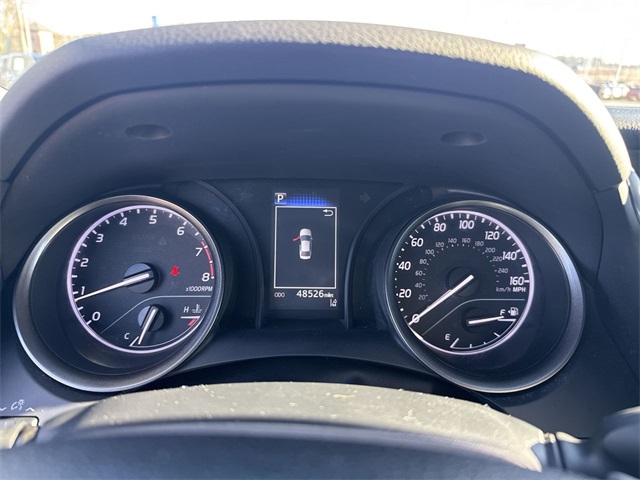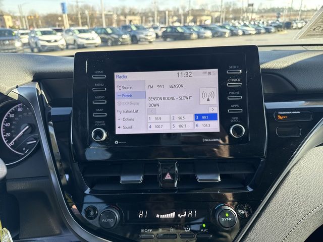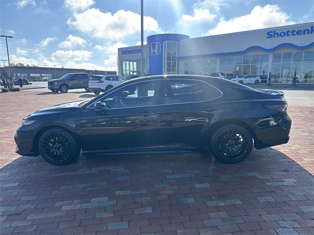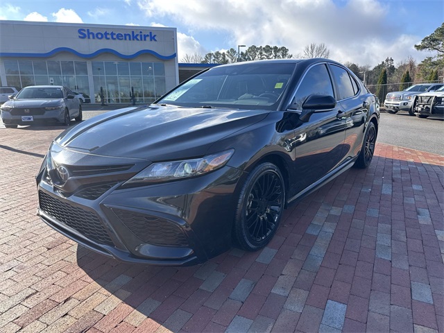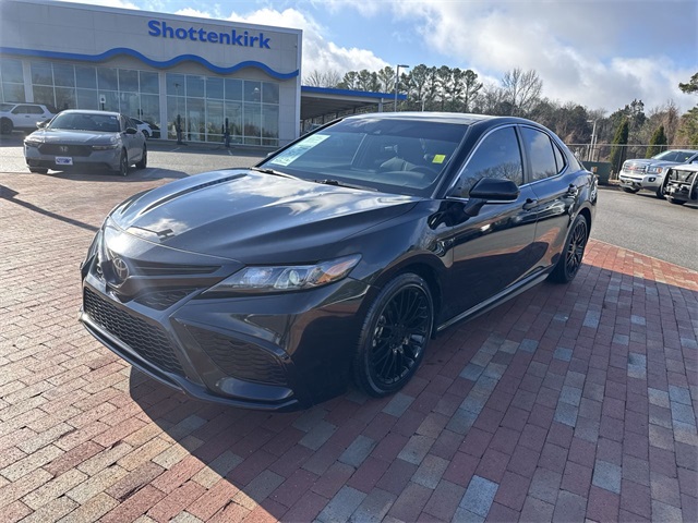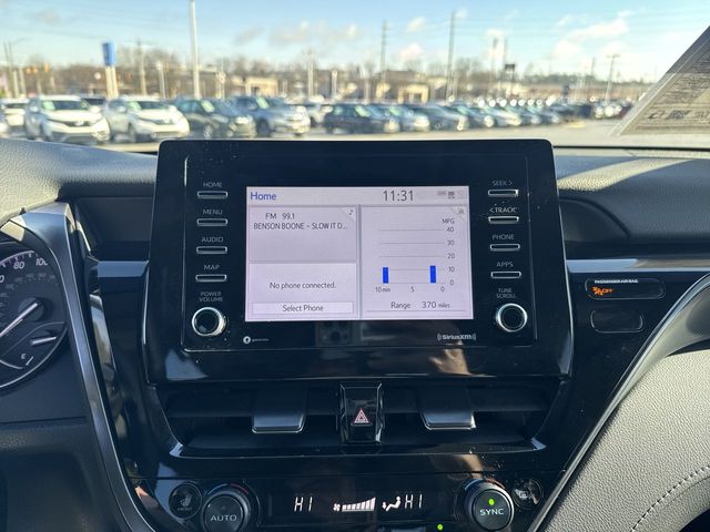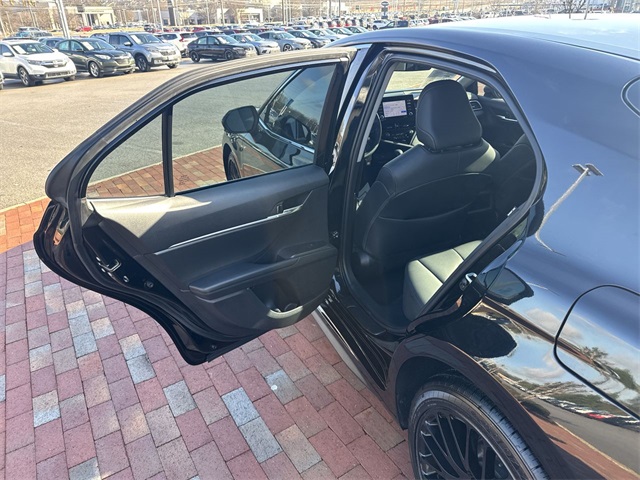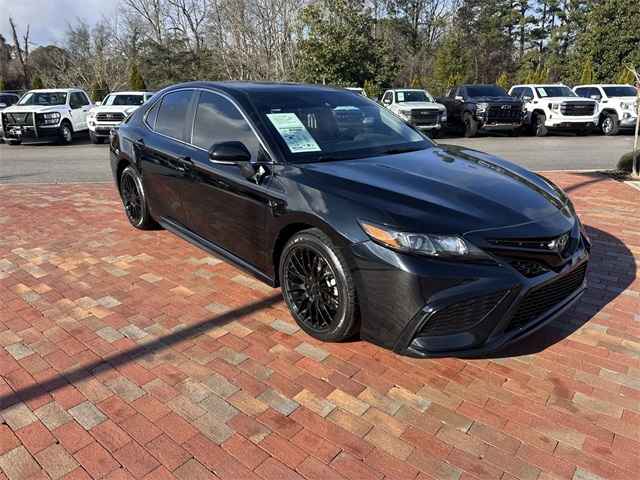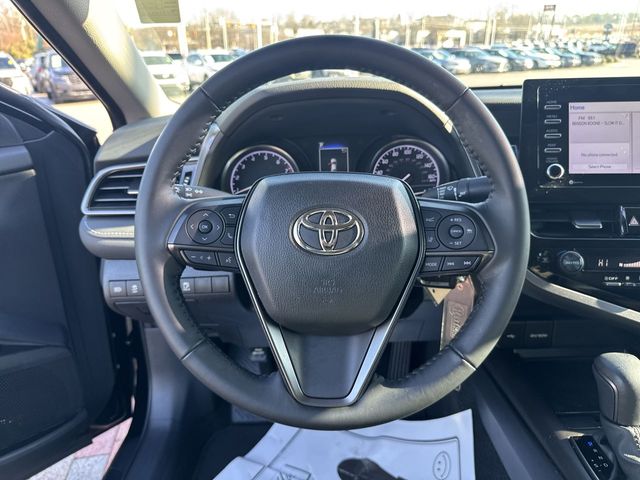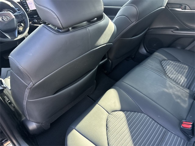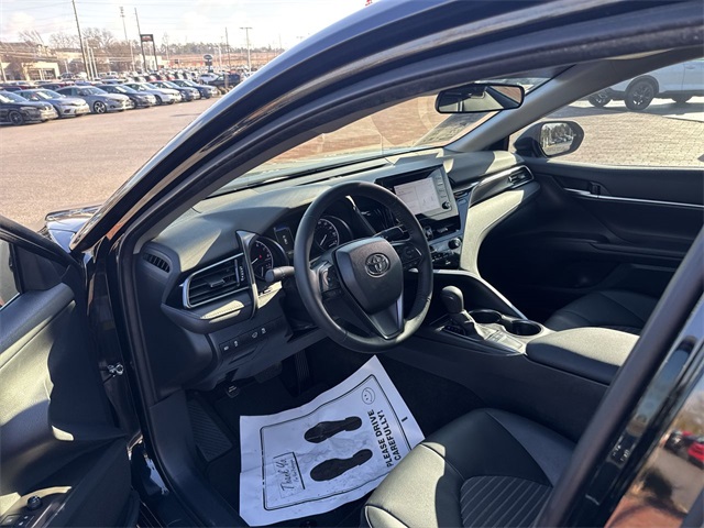 CARFAX One-Owner. 2023 Toyota Camry SE SE Black 4D Sedan 2.5L I4 DOHC 16V 8-Speed Automatic FWD This vehicle comes well equipped with ABS brakes, Active Cruise Control, Alloy wheels, Electronic Stability Control, Front dual zone A/C, Heated door mirrors, Illuminated entry, Low tire pressure warning, Remote keyless entry, and Traction control ABS brakes, Active Cruise Control, Alloy wheels, Electronic Stability Control, Front dual zone A/C, Heated door mirrors, Illuminated entry, Low tire pressure warning, Remote keyless entry, Traction control, 4-Wheel Disc Brakes, 6 Speakers, 8.0J x 18" Alloy Wheels, Air Conditioning, AM/FM radio: SiriusXM, Apple CarPlay/Android Auto, Auto High-beam Headlights, Automatic temperature control, Brake assist, Bumpers: body-color, Delay-off headlights, Driver door bin, Driver vanity mirror, Dual front impact airbags, Dual front side impact airbags, Emergency communication system: Safety Connect (1-year trial), Exterior Parking Camera Rear, Four wheel independent suspension, Front anti-roll bar, Front Bucket Seats, Front Center Armrest, Front reading lights, Fully automatic headlights, Knee airbag, Leather steering wheel, Occupant sensing airbag, Outside temperature display, Overhead airbag, Overhead console, Panic alarm, Passenger door bin, Passenger vanity mirror, Power door mirrors, Power driver seat, Power steering, Power windows, Radio data system, Radio: Audio, Rear anti-roll bar, Rear seat center armrest, Rear side impact airbag, Rear window defroster, Security system, Speed control, Speed-sensing steering, Split folding rear seat, Spoiler, Sport SofTex Seat Trim w/Fabric Inserts, Steering wheel mounted audio controls, Tachometer, Telescoping steering wheel, Tilt steering wheel, Trip computer, Turn signal indicator mirrors, and Variably intermittent wipers.