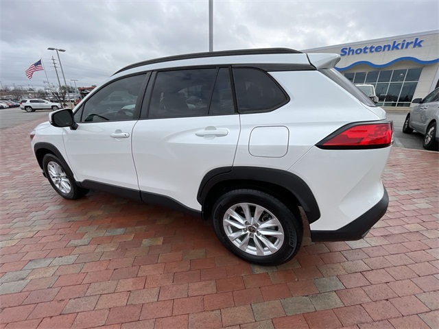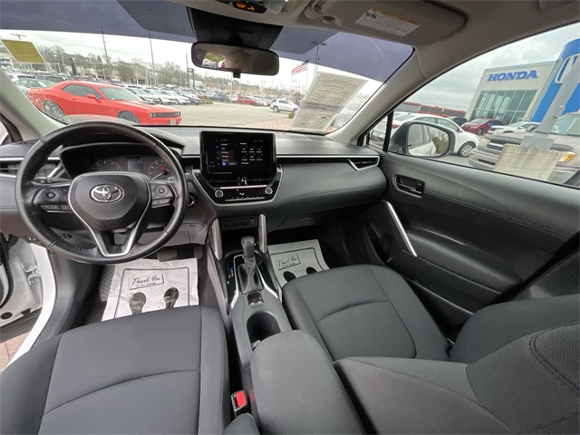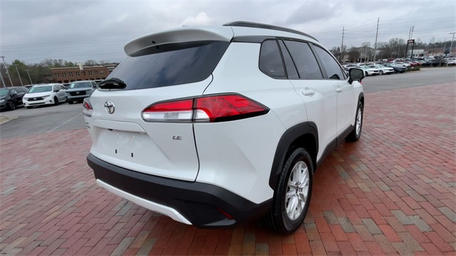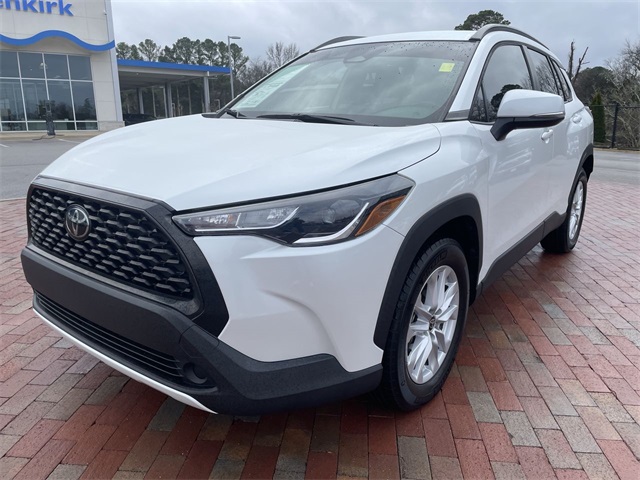 CARFAX One-Owner. 2023 Toyota Corolla Cross LE LE Wind Chill Pearl 4D Sport Utility 2.0L I4 PDI DOHC 16V LEV3-SULEV30 169hp CVT FWD This vehicle comes well equipped with 17" Alloy Wheels, 4-Wheel Disc Brakes, 4.014 Axle Ratio, 6 Speakers, ABS brakes, Air Conditioning, Alloy wheels, AM/FM radio: SiriusXM, Auto High-beam Headlights, Automatic temperature control, Brake assist, Bumpers: body-color, Delay-off headlights, Driver door bin, Driver vanity mirror, Dual front impact airbags, Dual front side impact airbags, Electronic Stability Control, Emergency communication system: Safety Connect (10-year trial), Exterior Parking Camera Rear, Fabric Seat Trim, Front anti-roll bar, Front Bucket Seats, Front Center Armrest, Front reading lights, Front wheel independent suspension, Fully automatic headlights, Heated door mirrors, Illuminated entry, Knee airbag, Leather steering wheel, Low tire pressure warning, Occupant sensing airbag, Outside temperature display, Overhead airbag, Panic alarm, Passenger door bin, Passenger vanity mirror, Power door mirrors, Power steering, Power windows, Radio data system, Radio: 8" Toyota Multimedia, Rear anti-roll bar, Rear side impact airbag, Rear window defroster, Rear window wiper, Remote keyless entry, Roof rack: rails only, Speed control, Split folding rear seat, Spoiler, Steering wheel mounted audio controls, Tachometer, Telescoping steering wheel, Tilt steering wheel, Traction control, Trip computer, Turn signal indicator mirrors, and Variably intermittent wipers.
