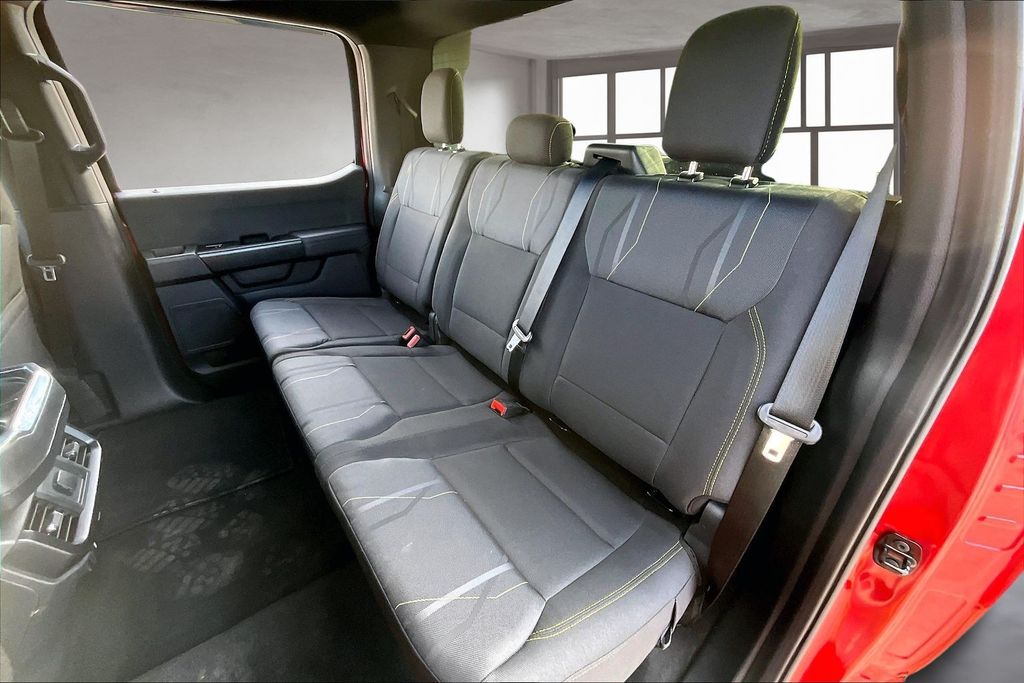 Apple CarPlay, Android Auto, Adaptive Cruise Control, Back Up Camera, Navigation, Parking Sensors, Tow Package, F-150 STX, 4D SuperCrew, 5.0L V8, 10-Speed Automatic, 4WD, Rapid Red Metallic Tinted Clearcoat, Black Cloth, 400W Cab & Bed Outlets, 6" Black Running Boards, AM/FM radio: SiriusXM with 360L, Black Exterior Badging, Console Worksurface, Emergency communication system: SYNC 4 911 Assist, Equipment Group 200A Standard, Front fog lights, Gray Box Side Decal, GVWR: 6,650 lbs Payload Package, Heated door mirrors, Mobile Office Package, Navigation system: Connected Navigation, Power door mirrors, Remote keyless entry, STX Black Appearance Package, Telescoping steering wheel, Tilt steering wheel, Tough Bed Spray-In Bedliner, Unique Sport Cloth 40/Console/40 Front-Seats, Wheels: 20" Gloss Black.