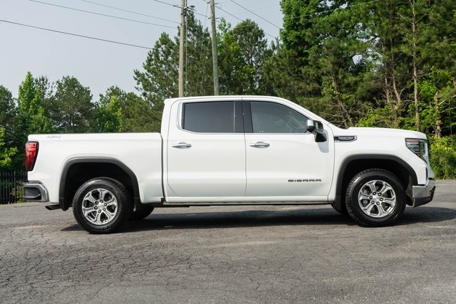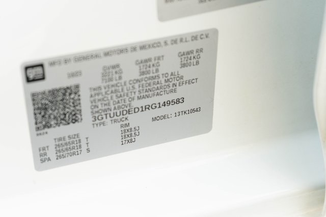 Summit White 2024 GMC Sierra 1500 SLT 4WD 10-Speed Automatic EcoTec3 5.3L V8 BLUETOOTH, APPLE CAR PLAY, ANDROID AUTO, LEATHER INTERIOR, ALLOY WHEELS, REAR BACK UP CAMERA, TOW HITCH, 10-Speed Automatic, 4WD, Black Leather, 120-Volt Bed Mounted Power Outlet, 120-Volt Interior Power Outlet, 170 Amp Alternator, 2 Charge/Data USB Ports, 2 Charge/Data USB Ports Inside Center Console, 2 Type-C Charge-Only Rear USB Ports, 6-Speaker Audio System Feature, Adaptive Cruise Control, All-Weather Floor Liner (LPO), Auto-Locking Rear Differential, Auxiliary External Transmission Oil Cooler, Chrome Header & Chrome Grille Insert Bars, Color-Keyed Carpeting Floor Covering, Deep-Tinted Glass, Electric Rear-Window Defogger, Electronic Precision Shift, Floor-Mounted Center Console, Front & Rear Black Molded Splash Guards (LPO), Front Bucket Seats, Front Frame-Mounted Black Recovery Hooks, Front Rain-Sensing Wipers, GMC Connected Access Capable, GMC Protection Package (LPO), HD Rear Vision Camera, HD Surround Vision, Heated 2nd Row Outboard Seats, Hitch Guidance, Keyless Open & Start, LED Cargo Area Lighting, Manual Tilt-Wheel & Telescoping Steering Column, Navigation System, OnStar & GMC Connected Services Capable, Perimeter Lighting, Power Door Locks, Power Front Passenger Windows w/Express Up/Down, Power Front Windows w/Driver Express Up/Down, Power Rake & Telescoping Steering Column, Power Rear Windows w/Express Down, Power Sliding Rear Window w/Rear Defogger, Preferred Equipment Group 4SA, Premium audio system: GMC Infotainment System, Premium Bose 7-Speaker Sound System, Push Button Start, Rear Cross Traffic Braking, Rear Pedestrian Detection, Rear Wheelhouse Liners, Remote Vehicle Starter System, Safety Alert Seat, Sierra Safety Plus Package, SiriusXM w/360L, SLT Convenience Package, SLT Preferred Package, Standard Suspension Package, Steering Wheel Audio Controls, Theft Deterrent System (Unauthorized Entry), Trailer Camera Provisions, Trailer Side Blind Zone Alert, Trailering Package, Ultrasonic Front & Rear Park Assist, Universal Home Remote, Ventilated Driver & Front Passenger Seats, Wi-Fi Hotspot Capable, Wireless Charging.