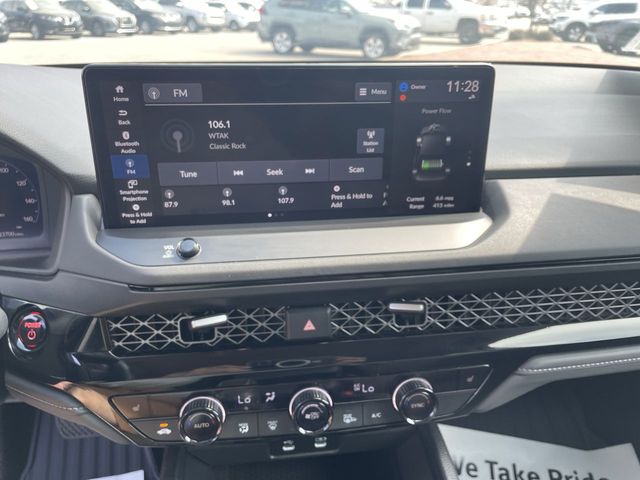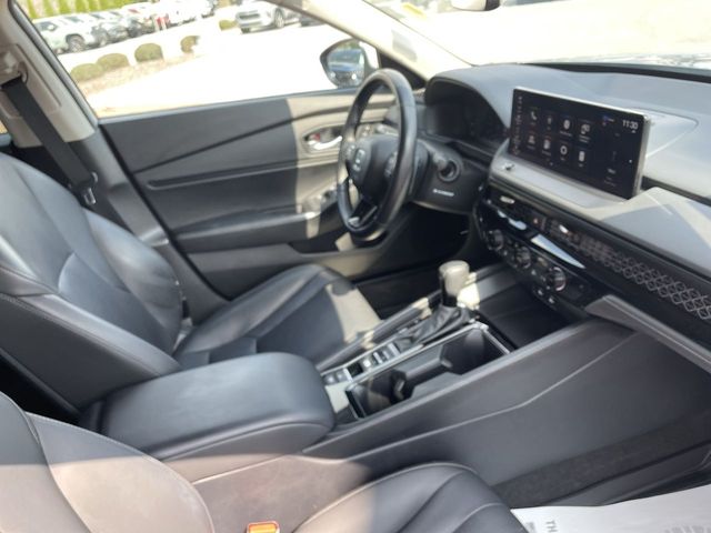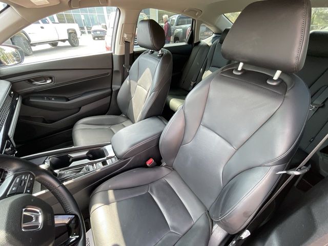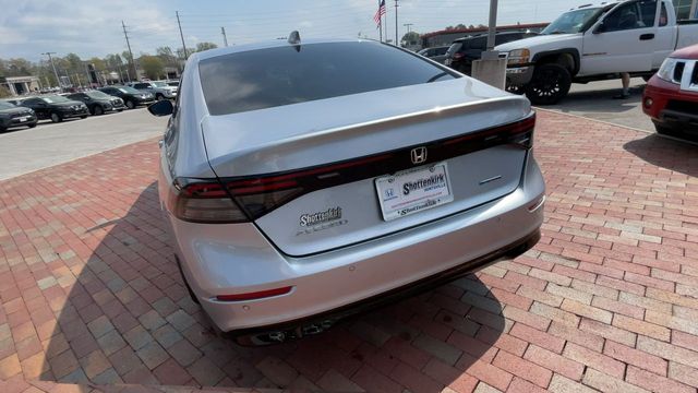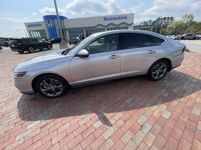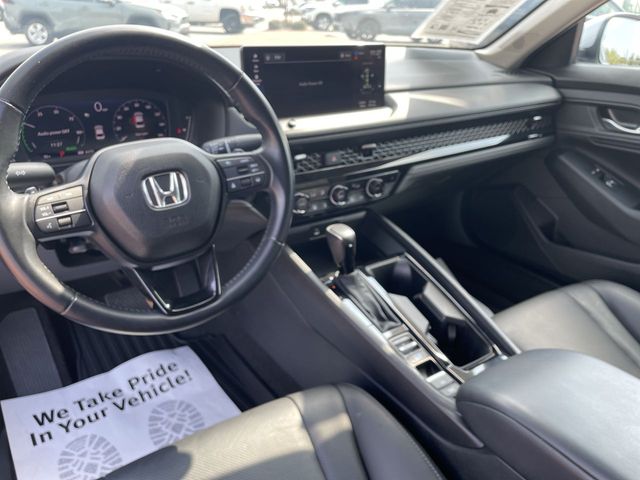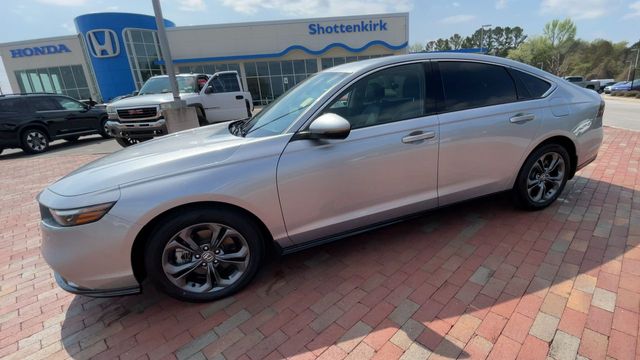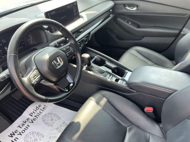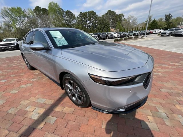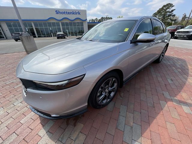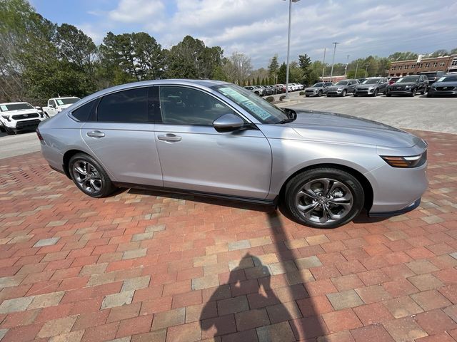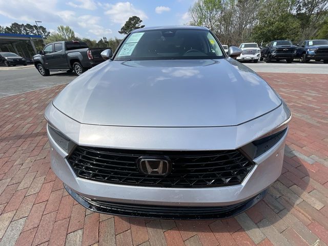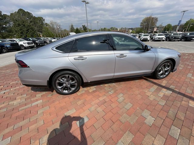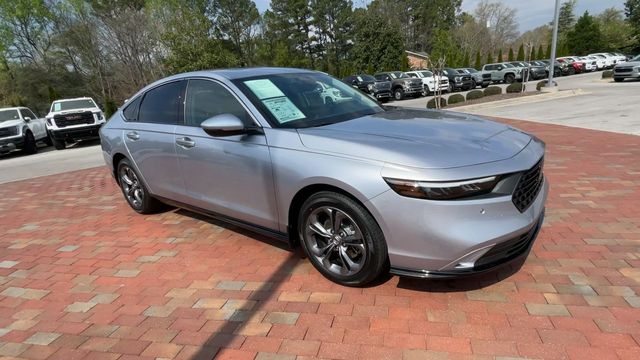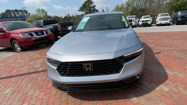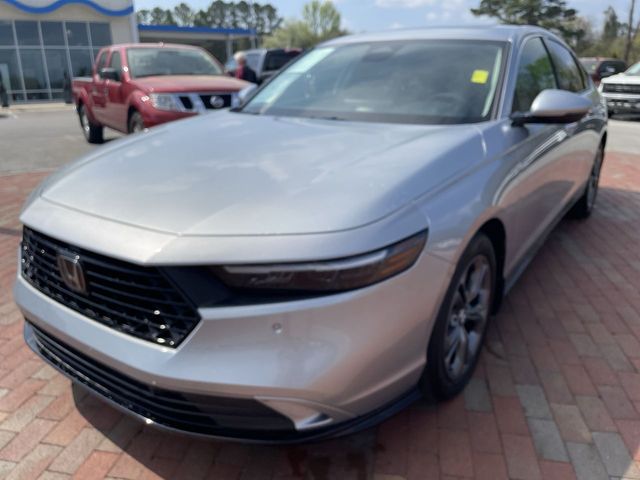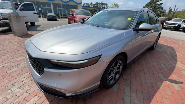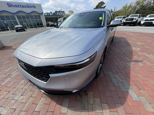 CARFAX One-Owner. Certified. 2024 Honda Accord Hybrid EX-L EX-L Solar Silver Metallic 4D Sedan 2.0L 16V DOHC eCVT FWD This vehicle comes well equipped with 4-Wheel Disc Brakes, 8 Speakers, ABS brakes, Adaptive Cruise Control: Adaptive Cruise Control (ACC) with Low-Speed Follow, Air Conditioning, Alloy wheels, AM/FM radio, Apple CarPlay/Android Auto, Auto High-beam Headlights, Auto-dimming Rear-View mirror, Automatic temperature control, Blind Spot Information (BSI) System warning, Brake assist, Bumpers: body-color, Compass, Delay-off headlights, Driver door bin, Driver vanity mirror, Dual front impact airbags, Dual front side impact airbags, Electronic Stability Control, Emergency communication system: HondaLink, Exterior Parking Camera Rear, Four wheel independent suspension, Front anti-roll bar, Front Bucket Seats, Front Center Armrest, Front dual zone A/C, Front reading lights, Fully automatic headlights, Heated door mirrors, Heated Front Bucket Seats, Heated front seats, Illuminated entry, Knee airbag, Lane departure: Lane Keeping Assist System (LKAS) active, Leather Shift Knob, Leather steering wheel, Leather-Trimmed Seat Trim, Low tire pressure warning, Memory seat, Occupant sensing airbag, Outside temperature display, Overhead airbag, Overhead console, Panic alarm, Passenger door bin, Passenger vanity mirror, Power door mirrors, Power driver seat, Power moonroof, Power passenger seat, Power steering, Power windows, Radio data system, Radio: 180-Watt Audio System, Rear anti-roll bar, Rear reading lights, Rear seat center armrest, Rear side impact airbag, Rear window defroster, Remote keyless entry, Security system, Speed control, Speed-sensing steering, Speed-Sensitive Wipers, Split folding rear seat, Steering wheel mounted audio controls, Telescoping steering wheel, Tilt steering wheel, Traction control, Trip computer, Turn signal indicator mirrors, Variably intermittent wipers, and Wheels: 17" x 7.5J Pewter Gray.