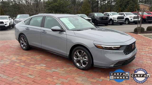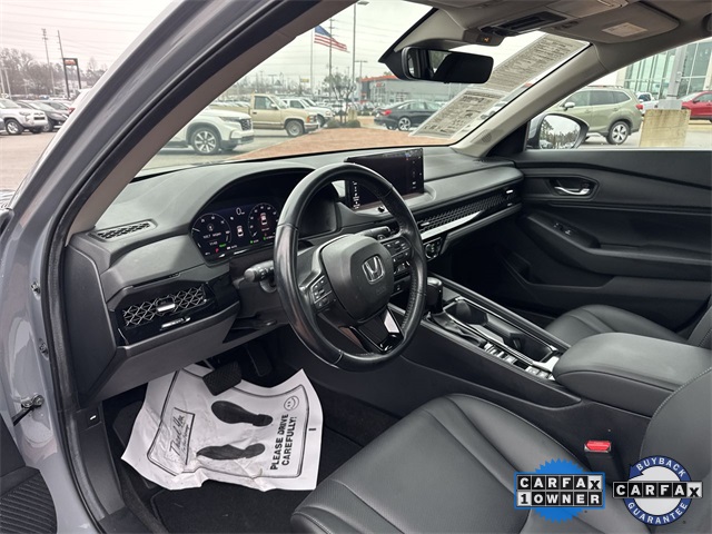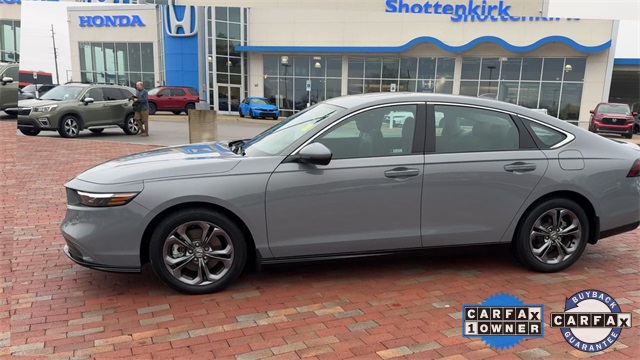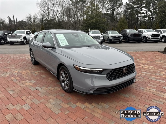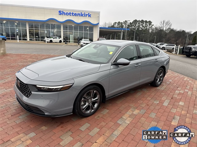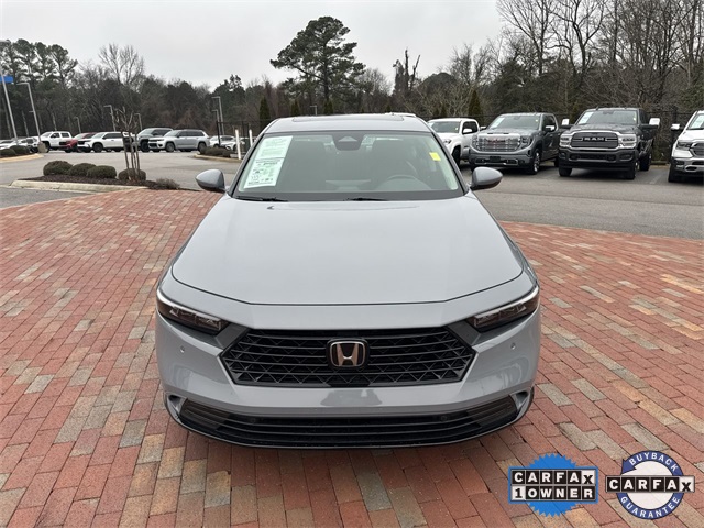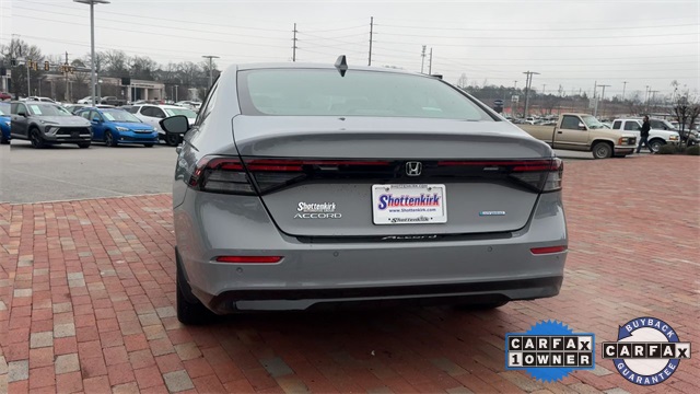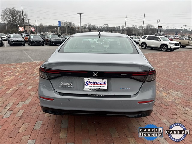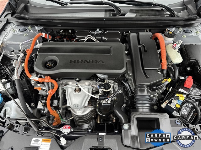 Recent Arrival! CARFAX One-Owner. Certified. 2024 Honda Accord Hybrid EX-L EX-L Urban Gray Pearl 4D Sedan 2.0L 16V DOHC eCVT FWD This vehicle comes well equipped with 4-Wheel Disc Brakes, 8 Speakers, ABS brakes, Adaptive Cruise Control: Adaptive Cruise Control (ACC) with Low-Speed Follow, Air Conditioning, Alloy wheels, AM/FM radio, Apple CarPlay/Android Auto, Auto High-beam Headlights, Auto-dimming Rear-View mirror, Automatic temperature control, Blind Spot Information (BSI) System warning, Brake assist, Bumpers: body-color, Compass, Delay-off headlights, Driver door bin, Driver vanity mirror, Dual front impact airbags, Dual front side impact airbags, Electronic Stability Control, Emergency communication system: HondaLink, Exterior Parking Camera Rear, Four wheel independent suspension, Front anti-roll bar, Front Bucket Seats, Front Center Armrest, Front dual zone A/C, Front reading lights, Fully automatic headlights, Heated door mirrors, Heated Front Bucket Seats, Heated front seats, Illuminated entry, Knee airbag, Lane departure: Lane Keeping Assist System (LKAS) active, Leather Shift Knob, Leather steering wheel, Leather-Trimmed Seat Trim, Low tire pressure warning, Memory seat, Occupant sensing airbag, Outside temperature display, Overhead airbag, Overhead console, Panic alarm, Passenger door bin, Passenger vanity mirror, Power door mirrors, Power driver seat, Power moonroof, Power passenger seat, Power steering, Power windows, Radio data system, Radio: 180-Watt Audio System, Rear anti-roll bar, Rear reading lights, Rear seat center armrest, Rear side impact airbag, Rear window defroster, Remote keyless entry, Security system, Speed control, Speed-sensing steering, Speed-Sensitive Wipers, Split folding rear seat, Steering wheel mounted audio controls, Telescoping steering wheel, Tilt steering wheel, Traction control, Trip computer, Turn signal indicator mirrors, Variably intermittent wipers, and Wheels: 17" x 7.5J Pewter Gray.