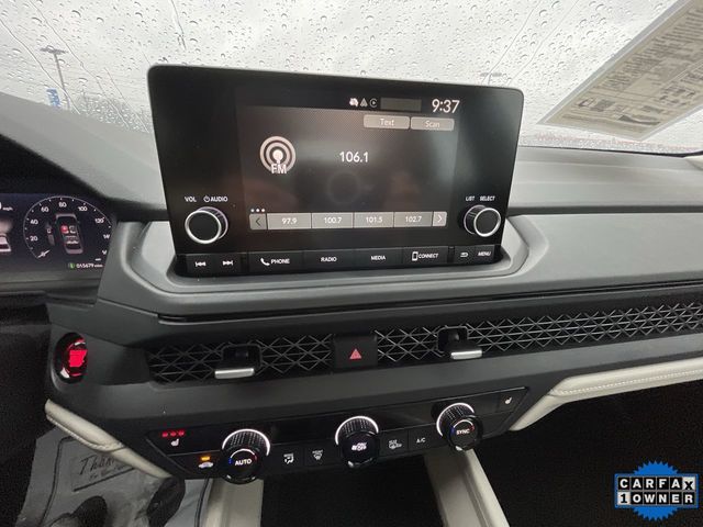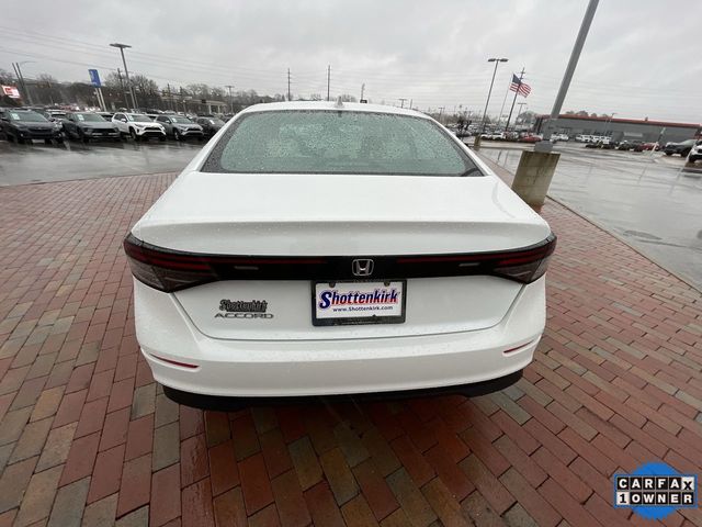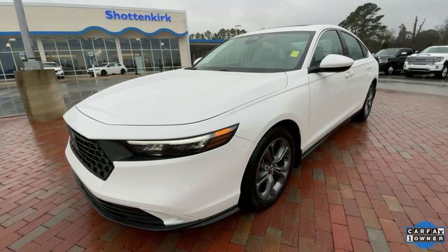 CARFAX One-Owner. Certified. 2024 Honda Accord EX EX Platinum White Pearl 4D Sedan 1.5T I4 DOHC 16V Turbocharged VTEC CVT FWD This vehicle comes well equipped with 4-Wheel Disc Brakes, 8 Speakers, ABS brakes, Adaptive Cruise Control: Adaptive Cruise Control (ACC) with Low-Speed Follow, Air Conditioning, Alloy wheels, AM/FM radio, Apple CarPlay/Android Auto, Auto High-beam Headlights, Auto-dimming Rear-View mirror, Automatic temperature control, Blind Spot Information (BSI) System warning, Brake assist, Bumpers: body-color, Compass, Delay-off headlights, Driver door bin, Driver vanity mirror, Dual front impact airbags, Dual front side impact airbags, Electronic Stability Control, Emergency communication system: HondaLink Assist, Exterior Parking Camera Rear, Fabric Seat Trim, Four wheel independent suspension, Front anti-roll bar, Front Bucket Seats, Front Center Armrest, Front dual zone A/C, Front reading lights, Fully automatic headlights, Heated Front Bucket Seats, Heated front seats, Illuminated entry, Knee airbag, Lane departure: Lane Keeping Assist System (LKAS) active, Low tire pressure warning, Occupant sensing airbag, Outside temperature display, Overhead airbag, Overhead console, Panic alarm, Passenger door bin, Passenger vanity mirror, Power door mirrors, Power driver seat, Power moonroof, Power steering, Power windows, Radio data system, Radio: 180-Watt AM/FM Audio System, Rear anti-roll bar, Rear reading lights, Rear seat center armrest, Rear side impact airbag, Rear window defroster, Remote keyless entry, Security system, Speed control, Speed-sensing steering, Speed-Sensitive Wipers, Split folding rear seat, Steering wheel mounted audio controls, Tachometer, Telescoping steering wheel, Tilt steering wheel, Traction control, Trip computer, Variably intermittent wipers, and Wheels: 17" x 7.5" Pewter Gray.