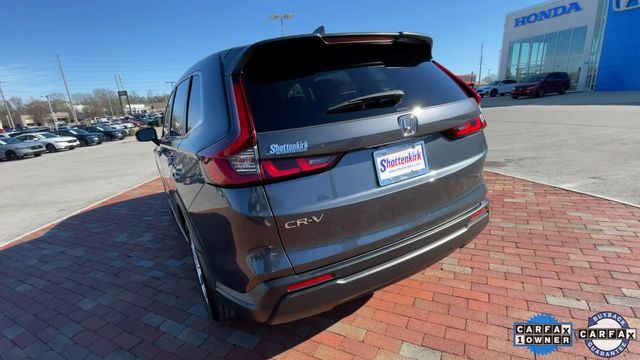 CARFAX One-Owner. Certified. 2024 Honda CR-V EX EX Meteorite Gray Metallic 4D Sport Utility 1.5L I4 DOHC 16V CVT AWD This vehicle comes well equipped with 4-Wheel Disc Brakes, 5.64 Axle Ratio, 6 Speakers, ABS brakes, Adaptive Cruise Control: Adaptive Cruise Control (ACC) with Low-Speed Follow, Air Conditioning, Alloy wheels, Apple CarPlay/Android Auto, Auto High-beam Headlights, Automatic temperature control, Blind Spot Information (BSI) System warning, Brake assist, Bumpers: body-color, Cloth Seat Trim, Compass, Delay-off headlights, Driver door bin, Driver vanity mirror, Dual front impact airbags, Dual front side impact airbags, Electronic Stability Control, Exterior Parking Camera Rear, Four wheel independent suspension, Front anti-roll bar, Front Bucket Seats, Front Center Armrest, Front dual zone A/C, Front reading lights, Fully automatic headlights, Heated door mirrors, Heated Front Bucket Seats, Heated front seats, Illuminated entry, Knee airbag, Low tire pressure warning, Occupant sensing airbag, Outside temperature display, Overhead airbag, Overhead console, Panic alarm, Passenger door bin, Passenger vanity mirror, Power door mirrors, Power driver seat, Power moonroof, Power steering, Power windows, Radio data system, Radio: 240-Watt AM/FM Audio System, Rear anti-roll bar, Rear reading lights, Rear seat center armrest, Rear side impact airbag, Rear window defroster, Rear window wiper, Remote keyless entry, Security system, Speed control, Speed-sensing steering, Speed-Sensitive Wipers, Split folding rear seat, Spoiler, Steering wheel mounted audio controls, Tachometer, Telescoping steering wheel, Tilt steering wheel, Traction control, Trip computer, Turn signal indicator mirrors, Variably intermittent wipers, and Wheels: 18" Sparkle Silver Metallic.