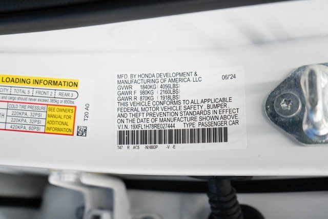 White 2024 Honda Civic EX-L FWD CVT 1.5L I4 DOHC 16V APPLE CAR PLAY, LEATHER INTERIOR, POWER SUNROOF, LOW MILES, Black Leather.