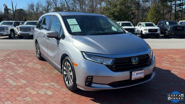 CARFAX One-Owner. 2024 Honda Odyssey EX-L EX-L Lunar Silver Metallic 4D Passenger Van 3.5L V6 SOHC i-VTEC 24V 10-Speed Automatic FWD This vehicle comes well equipped with 18" Machine-Finished Alloy Wheels, 3.61 Axle Ratio, 3rd row seats: split-bench, 4-Wheel Disc Brakes, 7 Speakers, A/V remote: CabinControl, ABS brakes, Adaptive Cruise Control: Adaptive Cruise Control (ACC) with Low-Speed Follow, Air Conditioning, Alloy wheels, AM/FM radio: SiriusXM, Anti-whiplash front head restraints, Apple CarPlay/Android Auto, Auto High-beam Headlights, Auto-dimming Rear-View mirror, Automatic temperature control, Blind Spot Information (BSI) System warning, Brake assist, Bumpers: body-color, Delay-off headlights, Driver door bin, Driver vanity mirror, Driver's Seat Mounted Armrest, Dual front impact airbags, Dual front side impact airbags, Electronic Stability Control, Exterior Parking Camera Rear, Four wheel independent suspension, Front anti-roll bar, Front Bucket Seats, Front dual zone A/C, Front fog lights, Front reading lights, Fully automatic headlights, Garage door transmitter: HomeLink, Heated door mirrors, Heated Front Bucket Seats, Heated front seats, Illuminated entry, Knee airbag, Lane departure: Lane Keeping Assist System (LKAS) active, Leather Seat Trim, Leather steering wheel, Low tire pressure warning, Memory seat, Occupant sensing airbag, Outside temperature display, Overhead airbag, Overhead console, Panic alarm, Passenger door bin, Passenger seat mounted armrest, Passenger vanity mirror, Power door mirrors, Power driver seat, Power Liftgate, Power moonroof, Power passenger seat, Power steering, Power windows, Radio data system, Radio: 160-Watt AM/FM/HD/SiriusXM Audio System, Rear air conditioning, Rear anti-roll bar, Rear reading lights, Rear seat center armrest, Rear window defroster, Rear window wiper, Reclining 3rd row seat, Remote keyless entry, Security system, Speed control, Speed-sensing steering, Speed-Sensitive Wipers, Split folding rear seat, Spoiler, Steering wheel mounted audio controls, Tachometer, Telescoping steering wheel, Tilt steering wheel, Traction control, Trip computer, Turn signal indicator mirrors, and Variably intermittent wipers.