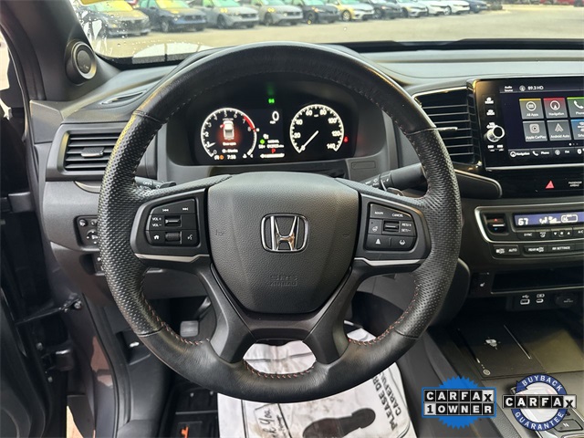 CARFAX One-Owner. Certified. 2024 Honda Ridgeline TrailSport TrailSport Modern Steel Metallic 4D Crew Cab 3.5L V6 SOHC i-VTEC 24V 9-Speed Automatic AWD This vehicle comes well equipped with 4-Wheel Disc Brakes, 4.33 Axle Ratio, 7 Speakers, ABS brakes, Air Conditioning, Alloy wheels, AM/FM radio: SiriusXM, Auto-dimming Rear-View mirror, Automatic temperature control, Blind Spot Information (BSI) System warning, Bluetooth® Hands-Free Link, Brake assist, Bumpers: body-color, Compass, Delay-off headlights, Driver door bin, Driver vanity mirror, Driver's Seat Mounted Armrest, Dual front impact airbags, Dual front side impact airbags, Electronic Stability Control, Emergency communication system: HondaLink Assist, Exterior Parking Camera Rear, Four wheel independent suspension, Front anti-roll bar, Front Bucket Seats, Front dual zone A/C, Front fog lights, Front reading lights, Fully automatic headlights, Garage door transmitter: HomeLink, Heated door mirrors, Heated Front Bucket Seats, Heated front seats, Honda Satellite-Linked Navigation System, Illuminated entry, Leather steering wheel, Leatherette Seat Trim, Low tire pressure warning, Memory seat, Navigation system: Honda Satellite-Linked Navigation System, Occupant sensing airbag, Outside temperature display, Overhead airbag, Overhead console, Panic alarm, Passenger door bin, Passenger seat mounted armrest, Passenger vanity mirror, Power door mirrors, Power driver seat, Power moonroof, Power passenger seat, Power steering, Power windows, Radio data system, Radio: 215-Watt Audio System w/7 Speakers, Rear air conditioning, Rear anti-roll bar, Rear reading lights, Rear seat center armrest, Rear step bumper, Rear window defroster, Remote keyless entry, Security system, SiriusXM, Speed control, Speed-sensing steering, Split folding rear seat, Steering wheel mounted audio controls, Tachometer, Telescoping steering wheel, Tilt steering wheel, Traction control, Trip computer, Turn signal indicator mirrors, Variably intermittent wipers, Wheels: 18" TrailSport Pewter Gray Alloy, and Wireless Apple CarPlay/Wireless Android Auto.