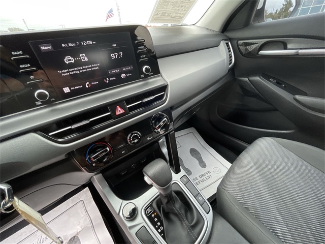 Recent Arrival! 2024 Kia Seltos LX LX Snow White Pearl 4D Sport Utility 2.0L I4 MPI CVT AWD This vehicle comes well equipped with 4-Wheel Disc Brakes, 6 Speakers, 6.052 Axle Ratio, ABS brakes, Air Conditioning, Alloy wheels, AM/FM radio, Apple CarPlay & Android Auto, Auto High-beam Headlights, Brake assist, Bumpers: body-color, Carpet Floor Mats, Cloth Seat Trim, Delay-off headlights, Driver door bin, Driver vanity mirror, Dual front impact airbags, Dual front side impact airbags, EC Mirror w/Homelink, Electronic Stability Control, Exterior Parking Camera Rear, Four wheel independent suspension, Front anti-roll bar, Front Bucket Seats, Front Center Armrest, Front reading lights, Fully automatic headlights, Illuminated entry, Lifestyle Hitch, Low tire pressure warning, Mud Guards, Occupant sensing airbag, Outside temperature display, Overhead airbag, Overhead console, Panic alarm, Passenger door bin, Passenger vanity mirror, Power door mirrors, Power steering, Power windows, Radio: AM/FM Display Audio, Rear Bumper Protector, Rear window defroster, Rear window wiper, Remote keyless entry, Reversible Cargo Mat/Tray, Security system, Speed control, Speed-sensing steering, Split folding rear seat, Spoiler, Steering wheel mounted audio controls, Tachometer, Telescoping steering wheel, Tilt steering wheel, Traction control, Trip computer, Variably intermittent wipers, and Wheels: 17" Alloy w/Dark Gray Finish.