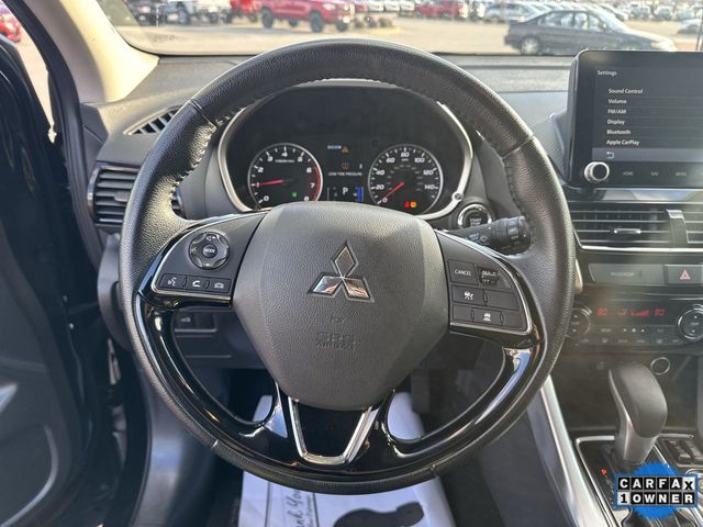 CARFAX One-Owner. 2024 Mitsubishi Eclipse Cross SEL SEL Black 4D Sport Utility 1.5L I4 DI Turbocharged DOHC 16V LEV3-ULEV70 152hp CVT 4WD This vehicle comes well equipped with ABS brakes, Active Cruise Control, Alloy wheels, Electronic Stability Control, Emergency communication system, Front dual zone A/C, Heated door mirrors, Heated Front Bucket Seats, Heated front seats, Illuminated entry, Low tire pressure warning, Navigation System, Power Liftgate, Remote keyless entry, and Traction control ABS brakes, Active Cruise Control, Alloy wheels, Electronic Stability Control, Emergency communication system, Front dual zone A/C, Heated door mirrors, Heated Front Bucket Seats, Heated front seats, Illuminated entry, Low tire pressure warning, Navigation System, Power Liftgate, Remote keyless entry, Traction control, 4-Wheel Disc Brakes, 6 Speakers, 6.386 Axle Ratio, Air Conditioning, AM/FM radio: SiriusXM, Android Auto & Apple CarPlay, Auto High-beam Headlights, Auto-dimming Rear-View mirror, Automatic temperature control, Blind Spot Warning, Brake assist, Bumpers: body-color, Delay-off headlights, Driver door bin, Driver vanity mirror, Dual front impact airbags, Dual front side impact airbags, Exterior Parking Camera Rear, Four wheel independent suspension, Front anti-roll bar, Front Bucket Seats, Front Center Armrest, Front fog lights, Front reading lights, Fully automatic headlights, Heated steering wheel, Knee airbag, Leather Appointed Seating Surfaces, Occupant sensing airbag, Outside temperature display, Overhead airbag, Overhead console, Panic alarm, Passenger door bin, Passenger vanity mirror, Power door mirrors, Power driver seat, Power passenger seat, Power steering, Power windows, Radio data system, Radio: AM/FM 8.0" Nav System w/Smartphone-Link, Rain sensing wipers, Rear anti-roll bar, Rear seat center armrest, Rear window defroster, Rear window wiper, Security system, Speed control, Speed-sensing steering, Split folding rear seat, Spoiler, Steering wheel mounted audio controls, Tachometer, Telescoping steering wheel, Tilt steering wheel, Trip computer, Turn signal indicator mirrors, Variably intermittent wipers, and Wheels: 18" x 7J Two-Tone Alloy.
