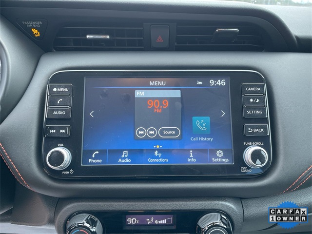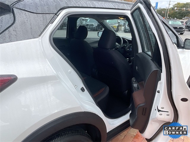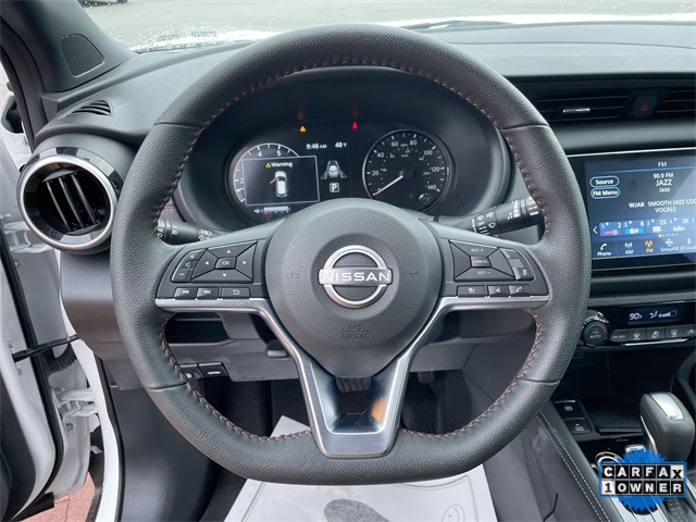 CARFAX One-Owner. 2024 Nissan Kicks SR SR Aspen White Tricoat/Super Black 4D Sport Utility 1.6L 4-Cylinder DOHC 16V CVT with Xtronic FWD This vehicle comes well equipped with 3.93 Axle Ratio, 4-Wheel Disc Brakes, 6 Speakers, ABS brakes, Air Conditioning, Alloy wheels, AM/FM radio: SiriusXM, Apple CarPlay/Android Auto, Auto High-beam Headlights, Automatic temperature control, Blind Spot Warning, Brake assist, Bumpers: body-color, Cloth Seat Trim, Delay-off headlights, Driver door bin, Driver vanity mirror, Dual front impact airbags, Dual front side impact airbags, Electronic Stability Control, Exterior Parking Camera Rear, Front anti-roll bar, Front Bucket Seats, Front Center Armrest, Front fog lights, Front reading lights, Front wheel independent suspension, Fully automatic headlights, Heated door mirrors, Illuminated entry, Knee airbag, Leather steering wheel, Low tire pressure warning, Occupant sensing airbag, Outside temperature display, Overhead airbag, Panic alarm, Passenger door bin, Passenger vanity mirror, Power door mirrors, Power steering, Power windows, Radio data system, Radio: AM/FM Audio System, Rear Parking Sensors, Rear reading lights, Rear side impact airbag, Rear window defroster, Rear window wiper, Remote keyless entry, Speed control, Split folding rear seat, Sport steering wheel, Steering wheel mounted audio controls, Tachometer, Telescoping steering wheel, Tilt steering wheel, Traction control, Trip computer, Turn signal indicator mirrors, Variably intermittent wipers, and Wheels: 17" Alloy (5-Hole)