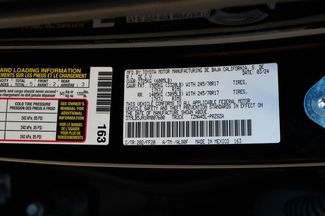 2024 Toyota Tacoma SR5 ABS brakes, Alloy wheels, Electronic Stability Control, Heated door mirrors, Illuminated entry, Low tire pressure warning, Remote keyless entry, Traction control.