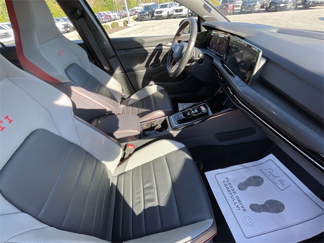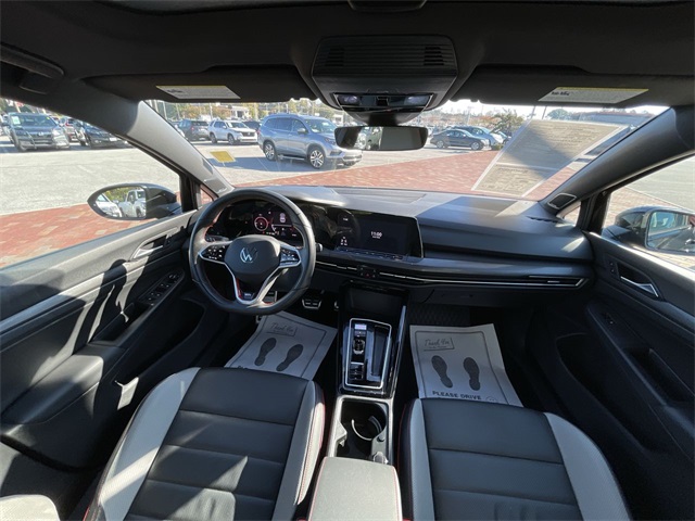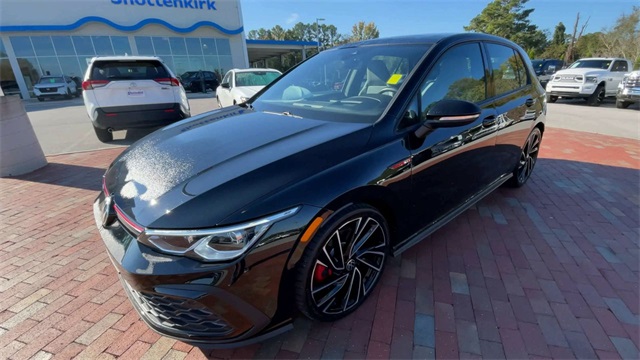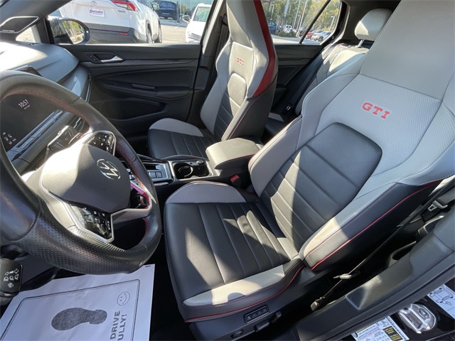 CARFAX One-Owner. 2024 Volkswagen Golf GTI Autobahn Autobahn Black Metallic 4D Hatchback 2.0L TSI DOHC 7-Speed DSG Automatic with Tiptronic FWD This vehicle comes well equipped with 4-Wheel Disc Brakes, 9 Speakers, ABS brakes, Active Blind Spot Monitor, Adaptive suspension, Air Conditioning, Alloy wheels, AM/FM radio: SiriusXM with 360L, Auto High-beam Headlights, Auto-dimming Rear-View mirror, Automatic temperature control, Brake assist, Bumpers: body-color, Compass, Delay-off headlights, Driver door bin, Driver vanity mirror, Dual front impact airbags, Dual front side impact airbags, Electronic Stability Control, Emergency communication system: VW Car-Net Safe & Secure 5-year, Exterior Parking Camera Rear, Forward collision: FCW w/Autonomous Emergency Braking mitigation, Four wheel independent suspension, Front anti-roll bar, Front Bucket Seats, Front Center Armrest, Front dual zone A/C, Front fog lights, Front reading lights, Fully automatic headlights, harman/kardon® Speakers, Heads-Up Display, Heated & Actively Ventilated Front Top Sport Seats, Heated door mirrors, Heated front seats, Heated rear seats, Heated steering wheel, Illuminated entry, Leather steering wheel, Low tire pressure warning, Memory seat, Navigation System, Occupant sensing airbag, Outside temperature display, Overhead airbag, Overhead console, Panic alarm, Passenger door bin, Passenger vanity mirror, Perforated Vienna Leather Seating Surfaces, Power door mirrors, Power driver seat, Power moonroof: Panoramic, Power passenger seat, Power steering, Power windows, Radio data system, Radio: MIB3 Discover Pro w/10" Touchscreen Navi, Rain sensing wipers, Rear air conditioning, Rear anti-roll bar, Rear reading lights, Rear seat center armrest, Rear window defroster, Rear window wiper, Remote keyless entry, Rubber Mats Kit, Security system, Speed control, Speed-sensing steering, Speed-Sensitive Wipers, Split folding rear seat, Spoiler, Sport steering wheel, Steering wheel mounted audio controls, Tachometer, Telescoping steering wheel, Tilt steering wheel, Traction control, Trip computer, Turn signal indicator mirrors, Variably intermittent wipers, Ventilated front seats, and Wheels: 19" 2-Tone Diamond-Turned Alloy.