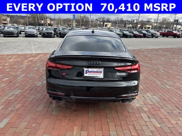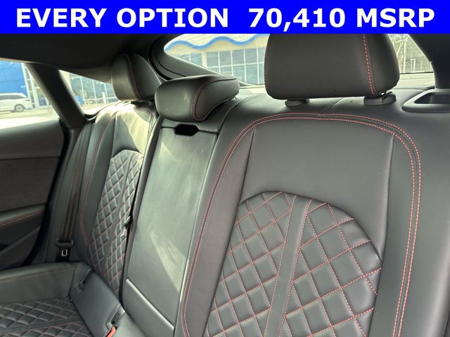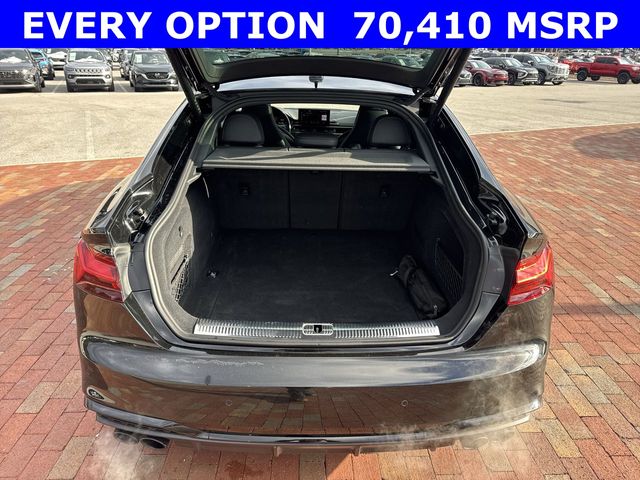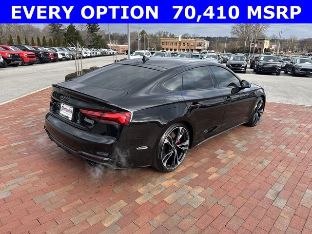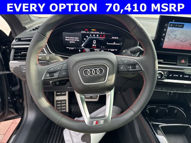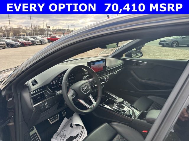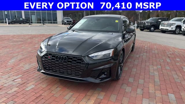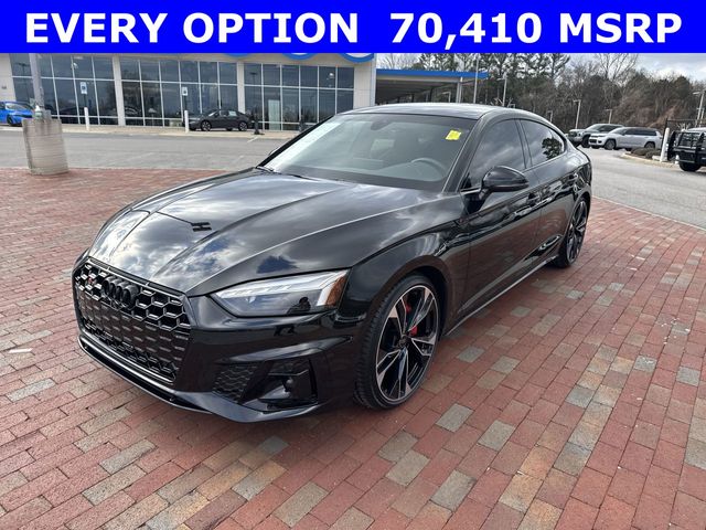 New Price! CARFAX One-Owner. 2025 Audi S5 Sportback Premium Plus quattro Premium Plus Black 4D Hatchback quattro 3.0L TFSI 8-Speed Automatic with Tiptronic quattro This vehicle comes well equipped with Audi Sport Interior Package, Black Optic Plus Package (Black Audi Rings and Badges, Black Exterior Mirror Housings and Exhaust Tips, Black Exterior Trim, Black Fender Badges, Black Rear Lip Spoiler, and Wheels: 20" 5-Twin-Spoke Polygon Design), Convenience Package (2 Rear USB Charge Ports, Alarm System with Motion Sensor, Audi Advanced Key, Audi Side Assist with Pre Sense Rear, Auto-Dimming Exterior Mirrors with Memory, Memory For Driver Seat, and SiriusXM with 360L), LED Interior Lighting Plus Package, Premium Plus Package (Audi Connect NAV and PLUS, Audi MMI Navigation Plus, Audi Virtual Cockpit Plus, Bang & Olufsen Sound System with 3D Sound, Leatherette Covered Center Console and Door Armrests, Power Folding Exterior Mirrors, Top View Camera System, Traffic Sign Recognition, and Wireless Phone Charging Pad), and S Sport Package (Red Brake Calipers, Sport Adaptive Damping Suspension, and Sport Rear Differential) Audi Sport Interior Package, Black Optic Plus Package (Black Audi Rings and Badges, Black Exterior Mirror Housings and Exhaust Tips, Black Exterior Trim, Black Fender Badges, Black Rear Lip Spoiler, and Wheels: 20" 5-Twin-Spoke Polygon Design), Convenience Package (2 Rear USB Charge Ports, Alarm System with Motion Sensor, Audi Advanced Key, Audi Side Assist with Pre Sense Rear, Auto-Dimming Exterior Mirrors with Memory, Memory For Driver Seat, and SiriusXM with 360L), LED Interior Lighting Plus Package, Premium Plus Package (Audi Connect NAV and PLUS, Audi MMI Navigation Plus, Audi Virtual Cockpit Plus, Bang & Olufsen Sound System with 3D Sound, Leatherette Covered Center Console and Door Armrests, Power Folding Exterior Mirrors, Top View Camera System, Traffic Sign Recognition, and Wireless Phone Charging Pad), S Sport Package (Red Brake Calipers, Sport Adaptive Damping Suspension, and Sport Rear Differential), 10 Speakers, 4-Wheel Disc Brakes, ABS brakes, Air Conditioning, Alloy wheels, AM/FM radio, Auto High-beam Headlights, Auto-dimming Rear-View mirror, Automatic temperature control, Brake assist, Bumpers: body-color, Compass, Delay-off headlights, Driver door bin, Driver vanity mirror, Dual front impact airbags, Dual front side impact airbags, Electronic Stability Control, Emergency communication system: Audi connect CARE, Exterior Parking Camera Rear, Four wheel independent suspension, Front anti-roll bar, Front Bucket Seats, Front Center Armrest, Front dual zone A/C, Front fog lights, Front reading lights, Garage door transmitter: HomeLink, Heated door mirrors, Heated Front S Sport Seats, Heated front seats, Heated steering wheel, Illuminated entry, Knee airbag, Leather Shift Knob, Leather steering wheel, Leather/Dinamica Seating Surfaces, Low tire pressure warning, Occupant sensing airbag, Outside temperature display, Overhead airbag, Overhead console, Panic alarm, Passenger door bin, Passenger vanity mirror, Power door mirrors, Power driver seat, Power Liftgate, Power moonroof, Power passenger seat, Power steering, Power windows, Radio data system, Radio: Audi Sound System, Rain sensing wipers, Rear air conditioning, Rear anti-roll bar, Rear reading lights, Rear seat center armrest, Rear window defroster, Remote keyless entry, Speed control, Speed-sensing steering, Speed-Sensitive Wipers, Split folding rear seat, Spoiler, Steering wheel mounted audio controls, Tachometer, Telescoping steering wheel, Tilt steering wheel, Traction control, Trip computer, Turn signal indicator mirrors, Variably intermittent wipers, and Wheels: 19" 5-Double-Arm Design Bi-Color Finish.