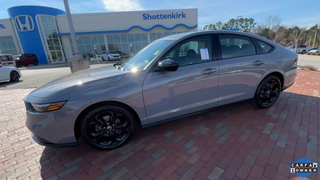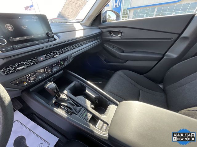 CARFAX One-Owner. Certified. 2025 Honda Accord SE SE Urban Gray Pearl 4D Sedan 1.5T I4 DOHC 16V Turbocharged VTEC CVT FWD This vehicle comes well equipped with 4-Wheel Disc Brakes, 8 Speakers, ABS brakes, Adaptive Cruise Control: Adaptive Cruise Control (ACC) with Low-Speed Follow, Air Conditioning, Alloy wheels, AM/FM radio, Apple CarPlay/Android Auto, Auto High-beam Headlights, Automatic temperature control, Blind Spot Information (BSI) System warning, Brake assist, Bumpers: body-color, Compass, Delay-off headlights, Driver door bin, Driver vanity mirror, Dual front impact airbags, Dual front side impact airbags, Electronic Stability Control, Emergency communication system: HondaLink Assist, Exterior Parking Camera Rear, Fabric Seat Trim, Four wheel independent suspension, Front anti-roll bar, Front Bucket Seats, Front Center Armrest, Front dual zone A/C, Front reading lights, Fully automatic headlights, Heated door mirrors, Heated Front Bucket Seats, Heated front seats, Illuminated entry, Knee airbag, Lane departure: Lane Keeping Assist System (LKAS) active, Low tire pressure warning, Occupant sensing airbag, Outside temperature display, Overhead airbag, Overhead console, Panic alarm, Passenger door bin, Passenger vanity mirror, Power door mirrors, Power driver seat, Power moonroof, Power steering, Power windows, Radio data system, Radio: 180-Watt Audio System, Rear anti-roll bar, Rear reading lights, Rear seat center armrest, Rear side impact airbag, Rear window defroster, Remote keyless entry, Security system, Speed control, Speed-sensing steering, Speed-Sensitive Wipers, Split folding rear seat, Steering wheel mounted audio controls, Tachometer, Telescoping steering wheel, Tilt steering wheel, Traction control, Trip computer, Variably intermittent wipers, and Wheels: 17" x 7.5J Berlina Black.