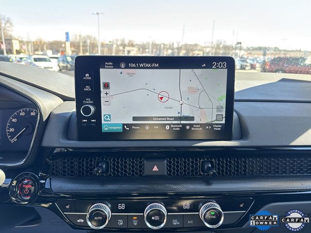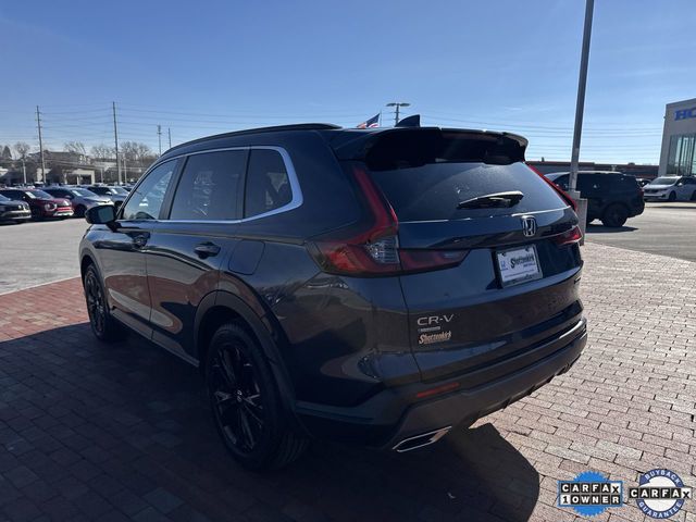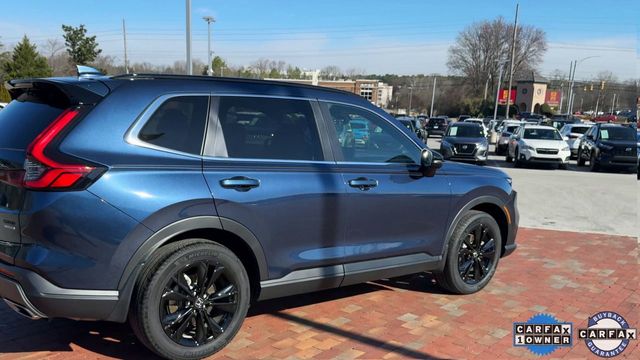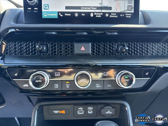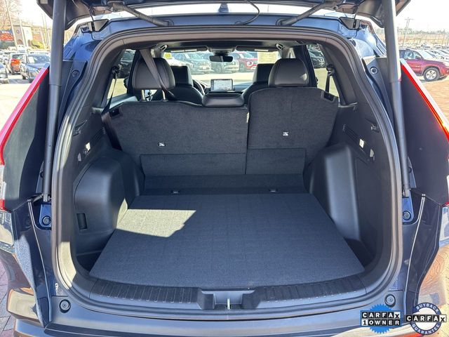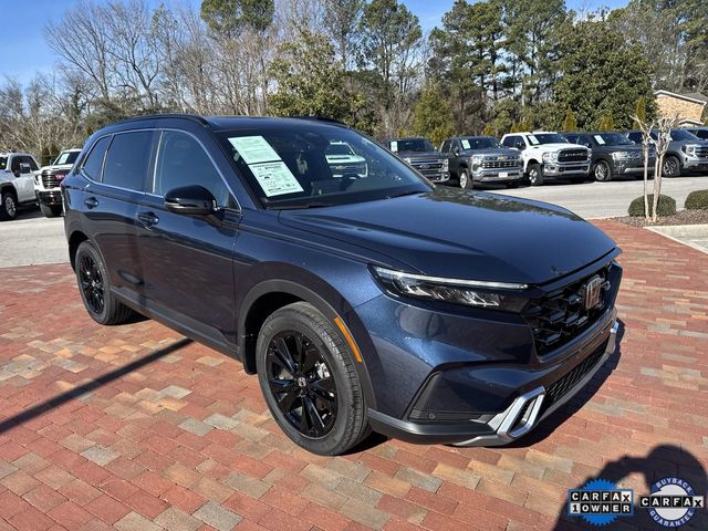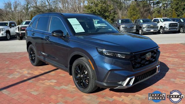 Recent Arrival! CARFAX One-Owner. Certified. 2025 Honda CR-V Hybrid Sport Touring Sport Touring Canyon River Blue Met 4D Sport Utility 2.0L I4 DOHC 16V eCVT AWD This vehicle comes well equipped with 12 Speakers, 4-Wheel Disc Brakes, ABS brakes, Adaptive Cruise Control: Adaptive Cruise Control (ACC) with Low-Speed Follow, Air Conditioning, Alloy wheels, AM/FM radio: SiriusXM, Auto High-beam Headlights, Auto-dimming Rear-View mirror, Automatic temperature control, Blind Spot Information (BSI) System warning, Brake assist, Bumpers: body-color, Compass, Delay-off headlights, Driver door bin, Driver vanity mirror, Dual front impact airbags, Dual front side impact airbags, Electronic Stability Control, Exterior Parking Camera Rear, Four wheel independent suspension, Front anti-roll bar, Front Bucket Seats, Front Center Armrest, Front dual zone A/C, Front reading lights, Fully automatic headlights, Heated door mirrors, Heated Front Bucket Seats, Heated front seats, Heated steering wheel, Illuminated entry, Knee airbag, Leather Seat Trim, Leather Shift Knob, Leather steering wheel, Low tire pressure warning, Memory seat, Navigation system: Honda Satellite-Linked Navigation System, Occupant sensing airbag, Outside temperature display, Overhead airbag, Overhead console, Panic alarm, Passenger door bin, Passenger vanity mirror, Power door mirrors, Power driver seat, Power Liftgate, Power moonroof, Power passenger seat, Power steering, Power windows, Radio data system, Radio: Bose Premium Sound System w/Navigation, Rain sensing wipers, Rear anti-roll bar, Rear reading lights, Rear seat center armrest, Rear side impact airbag, Rear window defroster, Rear window wiper, Remote keyless entry, Security system, Speed control, Speed-sensing steering, Speed-Sensitive Wipers, Split folding rear seat, Spoiler, Steering wheel mounted audio controls, Telescoping steering wheel, Tilt steering wheel, Traction control, Trip computer, Turn signal indicator mirrors, Variably intermittent wipers, and Wheels: 19" Berlina Black Alloy.