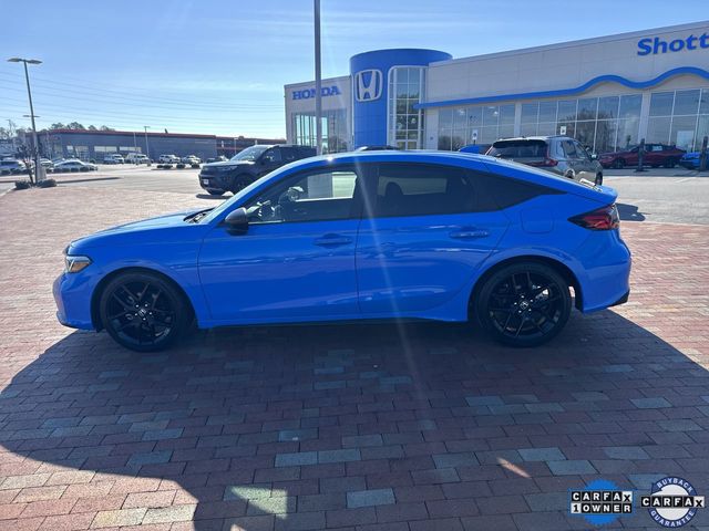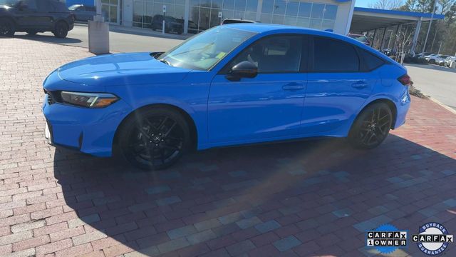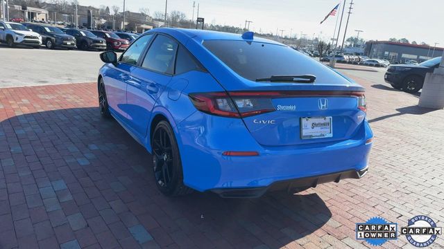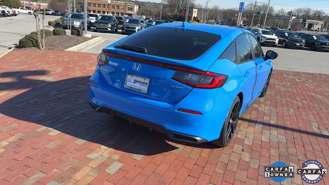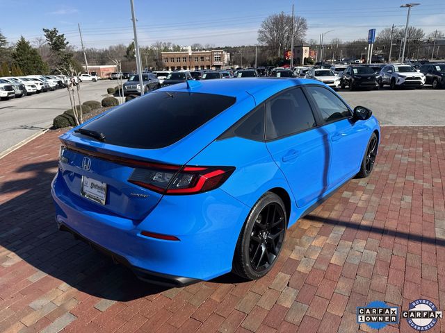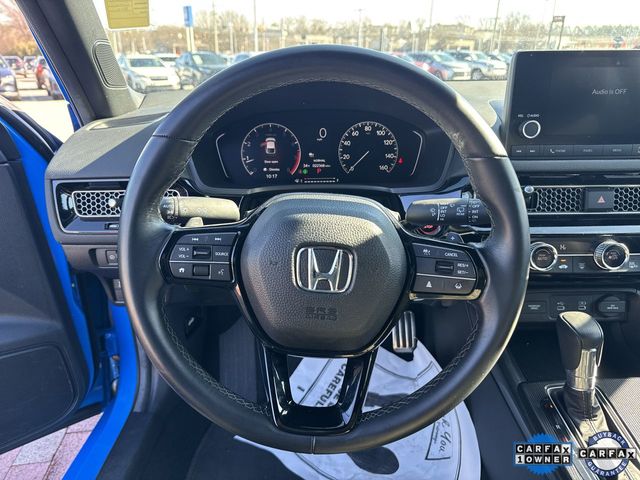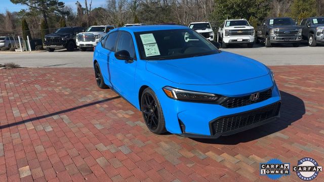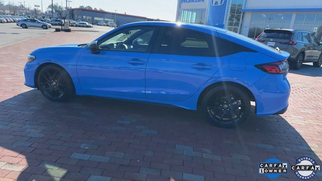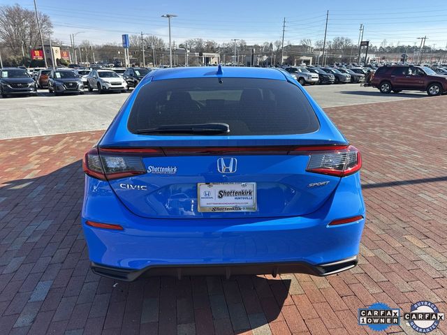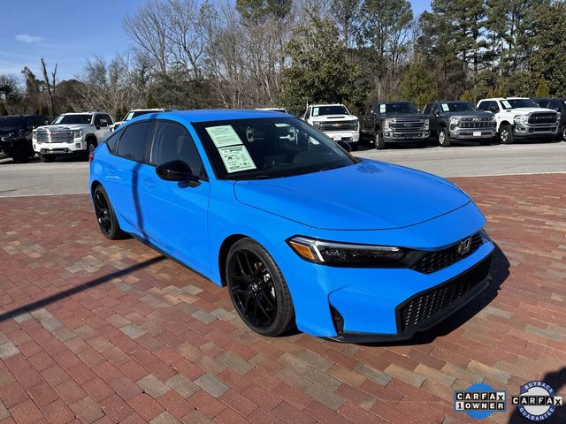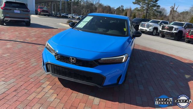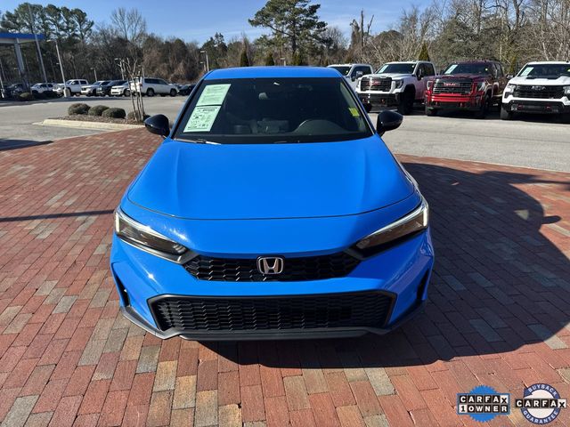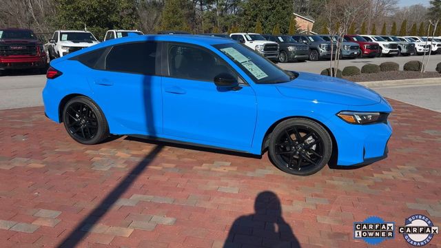 Recent Arrival! CARFAX One-Owner. Certified. 2025 Honda Civic Sport Sport Boost Blue Pearl 4D Hatchback 2.0L I4 DOHC 16V CVT FWD This vehicle comes well equipped with 4-Wheel Disc Brakes, 8 Speakers, ABS brakes, Adaptive Cruise Control: Adaptive Cruise Control (ACC) with Low-Speed Follow, Air Conditioning, Alloy wheels, AM/FM radio, Apple CarPlay/Android Auto, Auto High-beam Headlights, Automatic temperature control, Blind Spot Information (BSI) System warning, Brake assist, Bumpers: body-color, Cloth/Leatherette Seating Surfaces, Delay-off headlights, Driver door bin, Driver vanity mirror, Dual front impact airbags, Dual front side impact airbags, Electronic Stability Control, Emergency communication system: HondaLink, Exterior Parking Camera Rear, Four wheel independent suspension, Front anti-roll bar, Front Bucket Seats, Front Center Armrest, Front reading lights, Fully automatic headlights, Heated door mirrors, Illuminated entry, Knee airbag, Lane departure: Lane Keeping Assist System (LKAS) active, Leather Shift Knob, Low tire pressure warning, Occupant sensing airbag, Outside temperature display, Overhead airbag, Panic alarm, Passenger door bin, Passenger vanity mirror, Power door mirrors, Power steering, Power windows, Radio data system, Radio: 180-Watt Audio System, Rear anti-roll bar, Rear side impact airbag, Rear window defroster, Rear window wiper, Remote keyless entry, Security system, Speed control, Speed-sensing steering, Split folding rear seat, Steering wheel mounted audio controls, Tachometer, Telescoping steering wheel, Tilt steering wheel, Traction control, Trip computer, and Wheels: 18" Gloss Black Alloy.