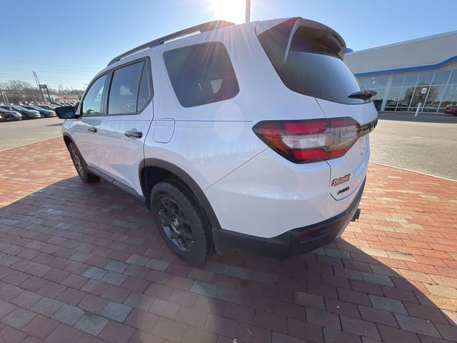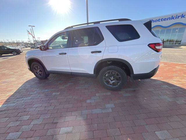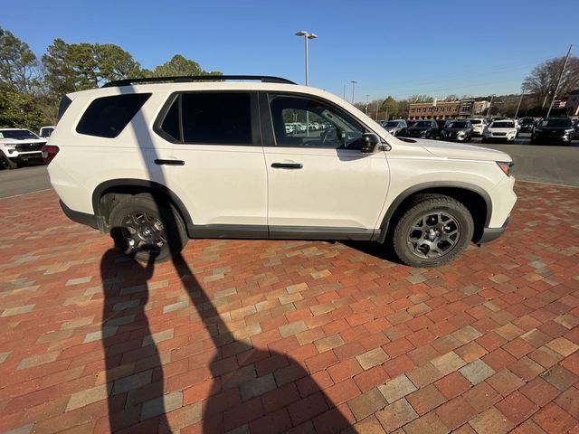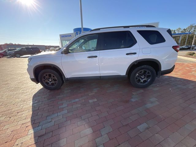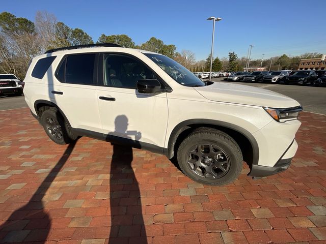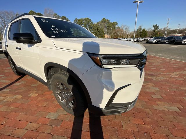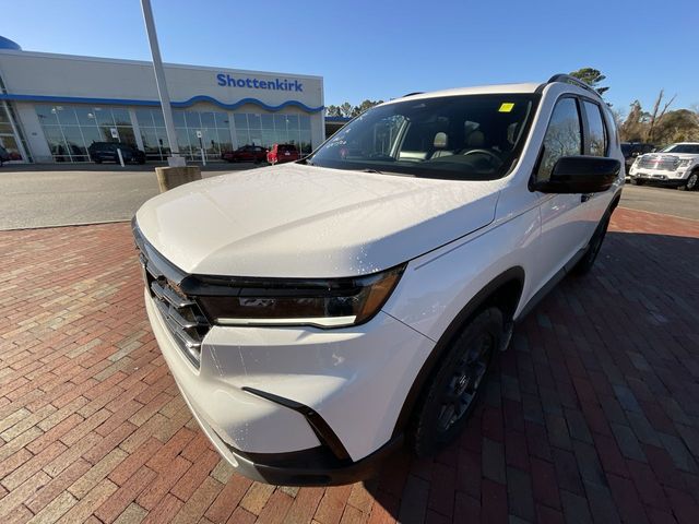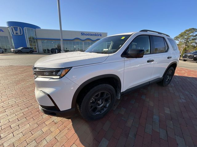 Recent Arrival! CARFAX One-Owner. Certified. 2025 Honda Pilot TrailSport TrailSport Platinum 4D Sport Utility 3.5L V6 DOHC 24V 10-Speed Automatic AWD This vehicle comes well equipped with 3rd row seats: split-bench, 4-Wheel Disc Brakes, 4.167 Axle Ratio, 9 Speakers, ABS brakes, Adaptive Cruise Control: Adaptive Cruise Control (ACC) with Low-Speed Follow, Air Conditioning, Alloy wheels, AM/FM radio: SiriusXM, Apple CarPlay/Android Auto, Auto High-beam Headlights, Auto-dimming Rear-View mirror, Automatic temperature control, Blind Spot Information (BSI) System warning, Brake assist, Bumpers: body-color, Delay-off headlights, Driver door bin, Driver vanity mirror, Dual front impact airbags, Dual front side impact airbags, Durable Synthetic Leather Seat Trim, Electronic Stability Control, Emergency communication system: HondaLink Assist, Exterior Parking Camera Rear, Four wheel independent suspension, Front anti-roll bar, Front Bucket Seats, Front Center Armrest, Front dual zone A/C, Front fog lights, Front reading lights, Fully automatic headlights, Garage door transmitter: HomeLink, Heated door mirrors, Heated Front Bucket Seats, Heated front seats, Illuminated entry, Knee airbag, Lane departure: Lane Keeping Assist System (LKAS) active, Low tire pressure warning, Memory seat, Occupant sensing airbag, Outside temperature display, Overhead airbag, Overhead console, Panic alarm, Passenger door bin, Passenger vanity mirror, Power door mirrors, Power driver seat, Power Liftgate, Power moonroof, Power passenger seat, Power steering, Power windows, Radio data system, Radio: 245-Watt Audio System, Rear air conditioning, Rear anti-roll bar, Rear reading lights, Rear window defroster, Rear window wiper, Reclining 3rd row seat, Remote keyless entry, Security system, SiriusXM, Speed control, Speed-sensing steering, Speed-Sensitive Wipers, Split folding rear seat, Spoiler, Steering wheel mounted audio controls, Tachometer, Telescoping steering wheel, Tilt steering wheel, Traction control, Trip computer, Turn signal indicator mirrors, Variably intermittent wipers, and Wheels: 18" Shark Gray with Black Lug Nuts.