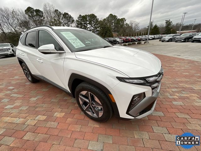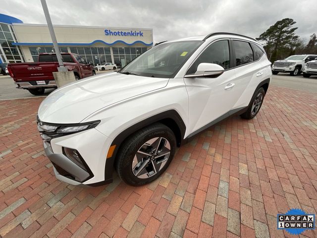 CARFAX One-Owner. 2025 Hyundai Tucson SEL Convenience SEL Convenience White Pearl 4D Sport Utility 2.5L I4 DGI DOHC 16V LEV3-SULEV30 187hp 8-Speed Automatic with SHIFTRONIC FWD This vehicle comes well equipped with Option Group 01, 18" Alloy Wheels, 4-Wheel Disc Brakes, 6 Speakers, ABS brakes, Air Conditioning, Alloy wheels, AM/FM radio: SiriusXM, Apple CarPlay & Android Auto, Auto High-beam Headlights, Auto-dimming Rear-View mirror, Automatic temperature control, Brake assist, Bumpers: body-color, Cargo Blocks, Cargo Cover, Cargo Net, Cargo Organizer, Carpeted Floor Mats, Delay-off headlights, Driver door bin, Driver vanity mirror, Dual front impact airbags, Dual front side impact airbags, Electronic Stability Control, Emergency communication system: Bluelink+, First Aid Kit, Four wheel independent suspension, Front anti-roll bar, Front Bucket Seats, Front Center Armrest, Front dual zone A/C, Front reading lights, Fully automatic headlights, H-Tex Seat Trim, Heated door mirrors, Heated Front Bucket Seats, Heated front seats, Illuminated entry, Leather steering wheel, Low tire pressure warning, Navigation System, Occupant sensing airbag, Outside temperature display, Overhead airbag, Overhead console, Panic alarm, Passenger door bin, Passenger vanity mirror, Power door mirrors, Power driver seat, Power Liftgate, Power moonroof, Power steering, Power windows, Radio data system, Radio: AM/FM/HD Audio System, Rear anti-roll bar, Rear Bumper Applique, Rear reading lights, Rear seat center armrest, Rear side impact airbag, Rear window defroster, Rear window wiper, Remote keyless entry, Security system, Speed control, Split folding rear seat, Spoiler, Steering wheel mounted audio controls, Tachometer, Telescoping steering wheel, Tilt steering wheel, Traction control, Trip computer, Turn signal indicator mirrors, and Variably intermittent wipers.
