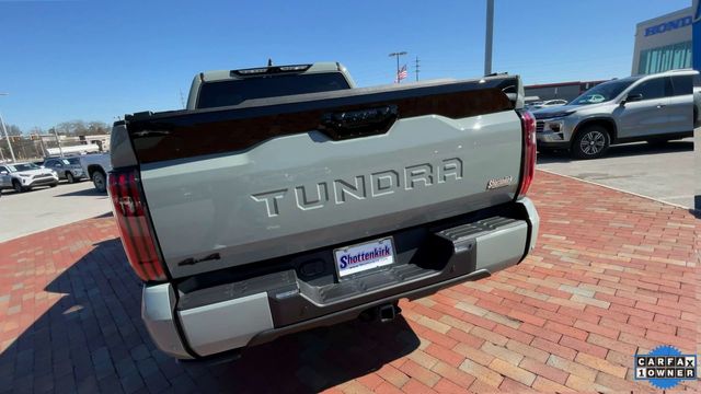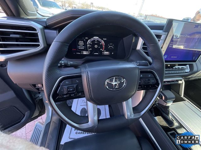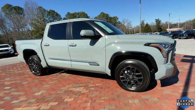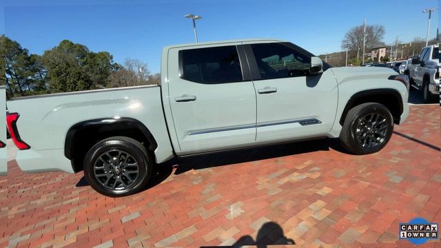 CARFAX One-Owner. 2025 Toyota Tundra Platinum Platinum Lunar Rock 4D CrewMax 3.4L V6 10-Speed Automatic 4WD This vehicle comes well equipped with Power Running Boards Power Running Boards, 10-Way Pwr Adj Heated and Ventilated Front Seats, 12 Speakers, 3.31 Axle Ratio, 4-Wheel Disc Brakes, ABS brakes, Air Conditioning, Alloy wheels, AM/FM radio: SiriusXM, Apple CarPlay/Android Auto, Auto High-beam Headlights, Auto-dimming door mirrors, Auto-dimming Rear-View mirror, Automatic temperature control, Brake assist, Bumpers: body-color, Delay-off headlights, Driver door bin, Driver vanity mirror, Dual front impact airbags, Dual front side impact airbags, Electronic Stability Control, Emergency communication system: Safety Connect (10-year trial), Exterior Parking Camera Rear, Front anti-roll bar, Front Bucket Seats, Front Center Armrest, Front dual zone A/C, Front fog lights, Front reading lights, Front wheel independent suspension, Fully automatic headlights, Garage door transmitter: HomeLink, Head Up Display (HUD), Heated door mirrors, Heated front seats, Heated rear seats, Heated steering wheel, Illuminated entry, Knee airbag, Leather Shift Knob, Leather steering wheel, Low tire pressure warning, Memory seat, Navigation System, Occupant sensing airbag, Outside temperature display, Overhead airbag, Overhead console, Panic alarm, Passenger door bin, Passenger vanity mirror, Power door mirrors, Power driver seat, Power moonroof, Power passenger seat, Power steering, Power windows, Premium Leather Seat Trim, Radio data system, Radio: Audio Multimedia System, Rain sensing wipers, Rear reading lights, Rear seat center armrest, Rear step bumper, Rear window defroster, Remote keyless entry, Safety Connect, Security system, Speed control, Speed-sensing steering, Split folding rear seat, Steering wheel memory, Steering wheel mounted audio controls, Tachometer, Telescoping steering wheel, Tilt steering wheel, Traction control, Trip computer, Turn signal indicator mirrors, Variably intermittent wipers, Ventilated front seats, Ventilated rear seats, Voltmeter, and Wheels: 20" Dark Painted Alloy.